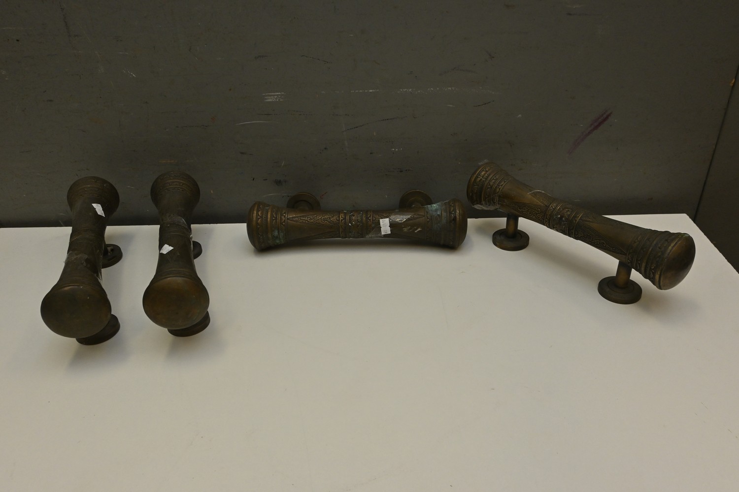 FOUR BRASS DOOR HANDLES ( 30H CM) (LEONARD JOEL DELIVERY SIZE: MEDIUM)