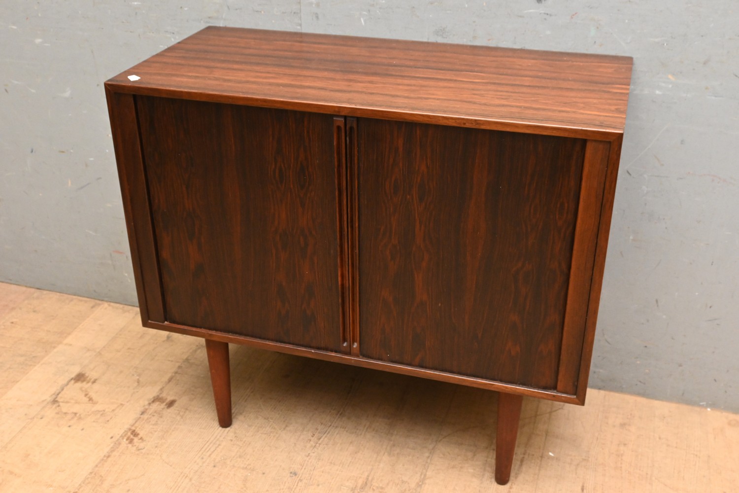 A KAI KRISTIANSEN BRAZILLIAN ROSEWOOD TAMBOUR DOOR CABINET (A/F) (76H X 86W X 40D CM) (LEONARD JOEL DELIVERY SIZE: LARGE)