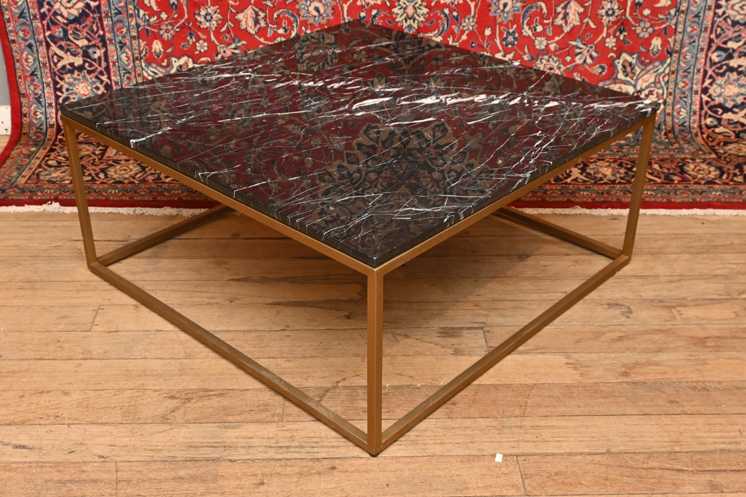 AN ITALIAN MARBLE COFFEE TABLE ( A/F) ( 46H X 100W X 100D CM) (PLEASE NOTE THIS HEAVY ITEM MUST BE REMOVED BY CLIENTS OR CARRIERS AT THE CUSTOMERS EXPENSE. LEONARD JOEL STAFF CANNOT ASSIST CARRYING THIS ITEM)