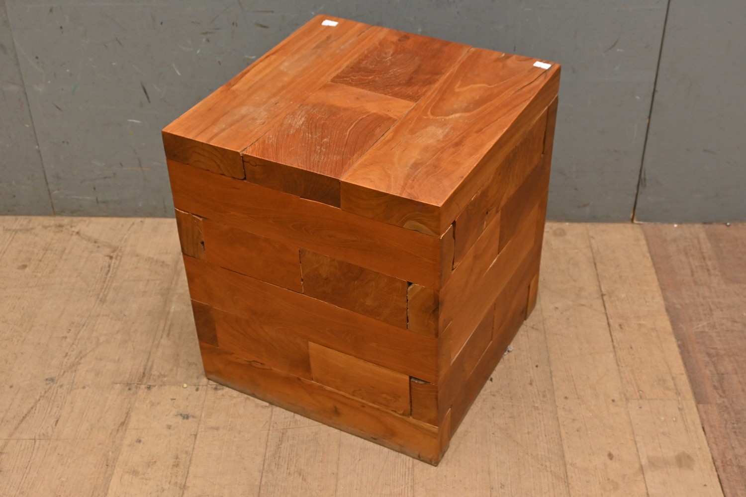 A TIMBER DISPLAY PLYNTH (A/F) (45H X 41W X 41D CM) (LEONARD JOEL DELIVERY SIZE: LARGE)