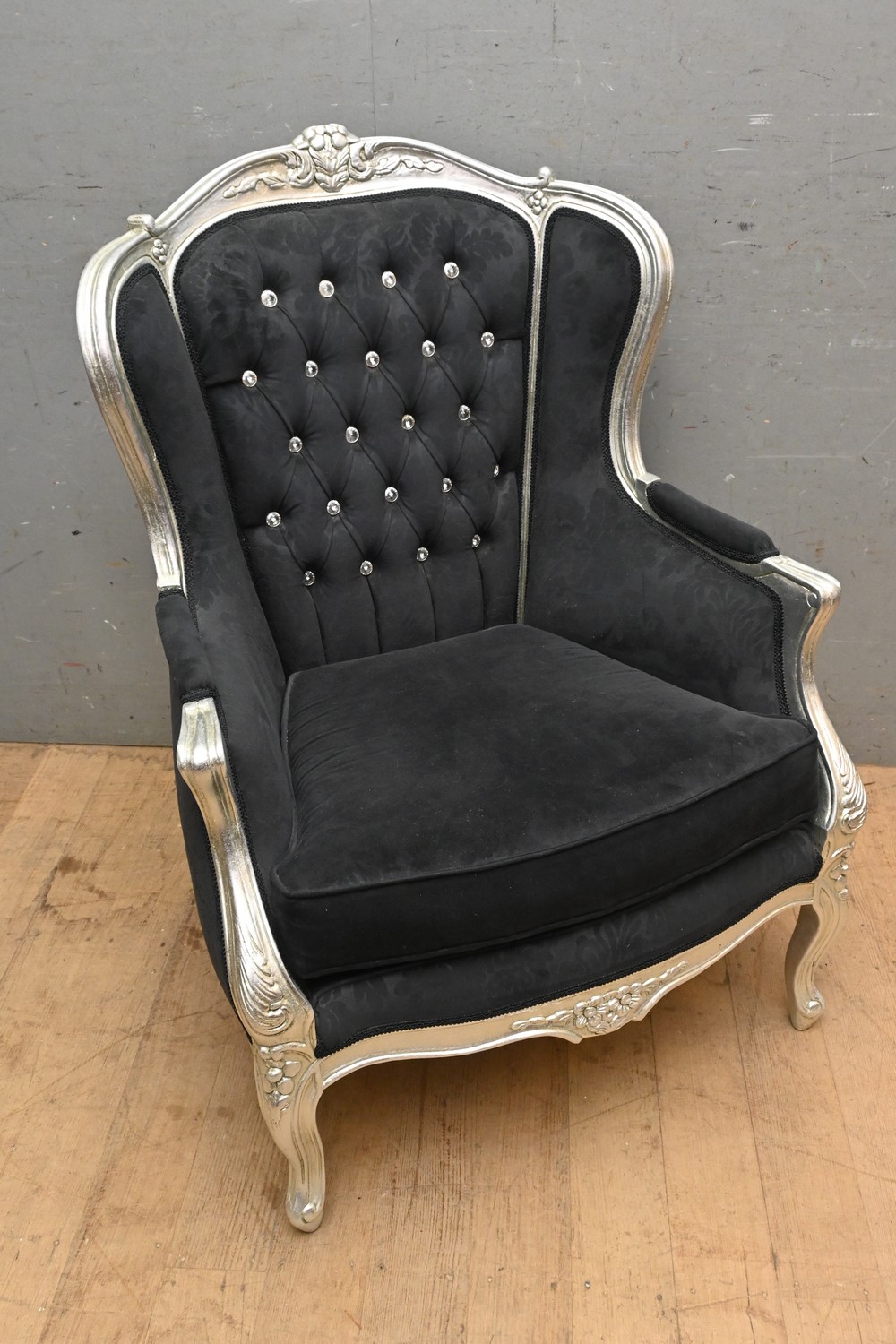 A LOUIS XV STYLE VELVET ARMCHAIR ( 100H X 76W X 76D CM) (LEONARD JOEL DELIVERY SIZE: LARGE)
