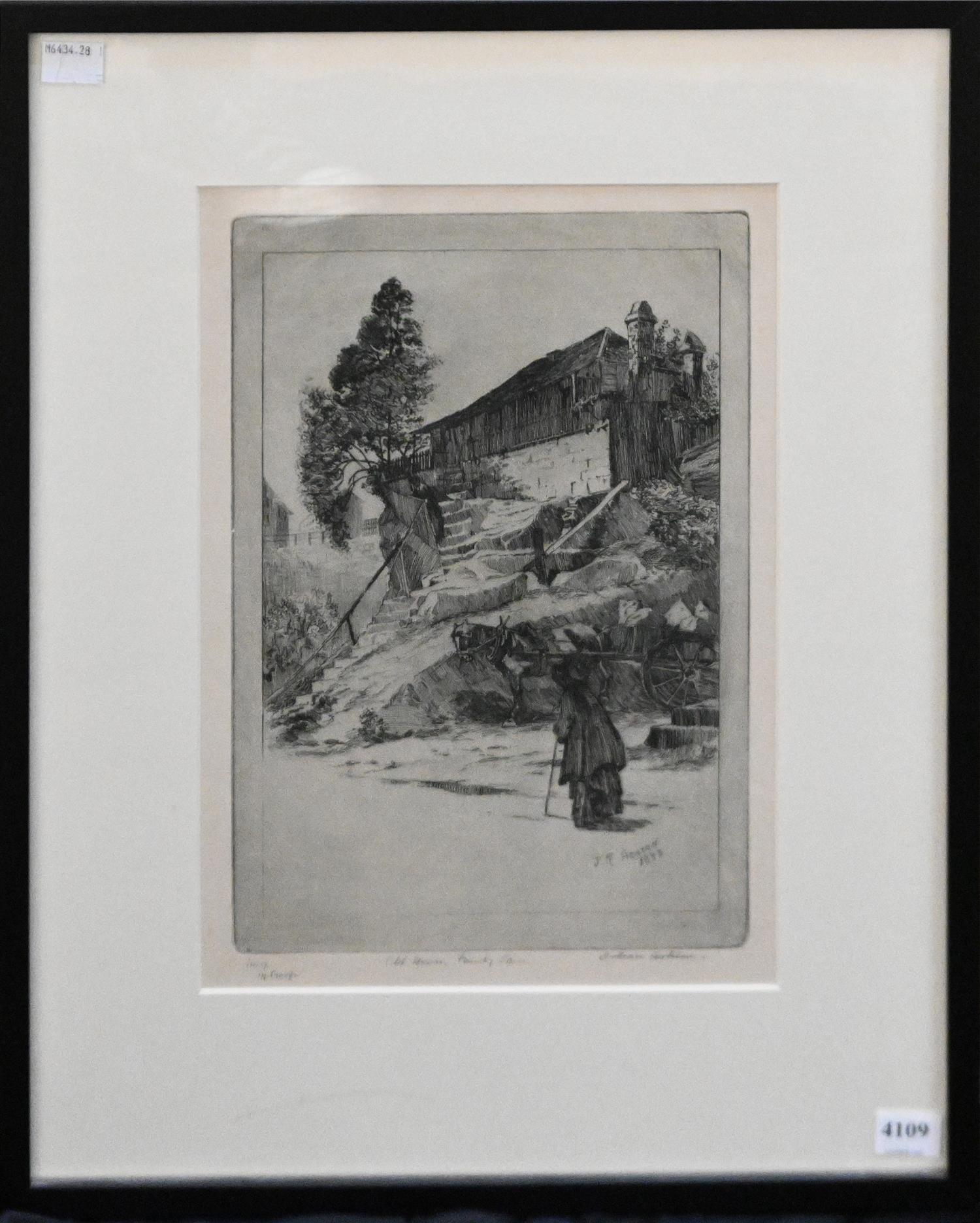 JULIAN ROSSI ASHTON, OLD HOUSE, TRINITY LANE 1893, ETCHING, ED. 9/14, SIGNED IN PLATE LOWER RIGHT, SIGNED, TITLED AND EDITION BELOW PLATE, 30 X 19.5CM (PLATE), FRAMED: 49.5 X 37.5CM