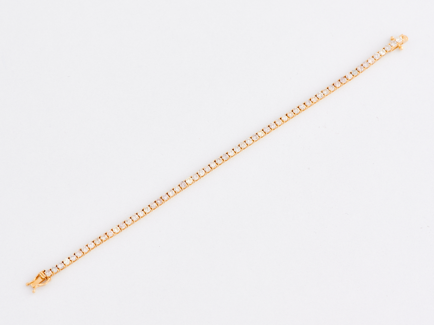 A DIAMOND SET TENNIS BRACELET IN 18CT GOLD, THE DIAMONDS TOTALLING APPROXIMATELY 5.10CTS, G-J / SI/P1, LENGTH 177MM, WEIGHT 7.8GMS, WITH VALUATION