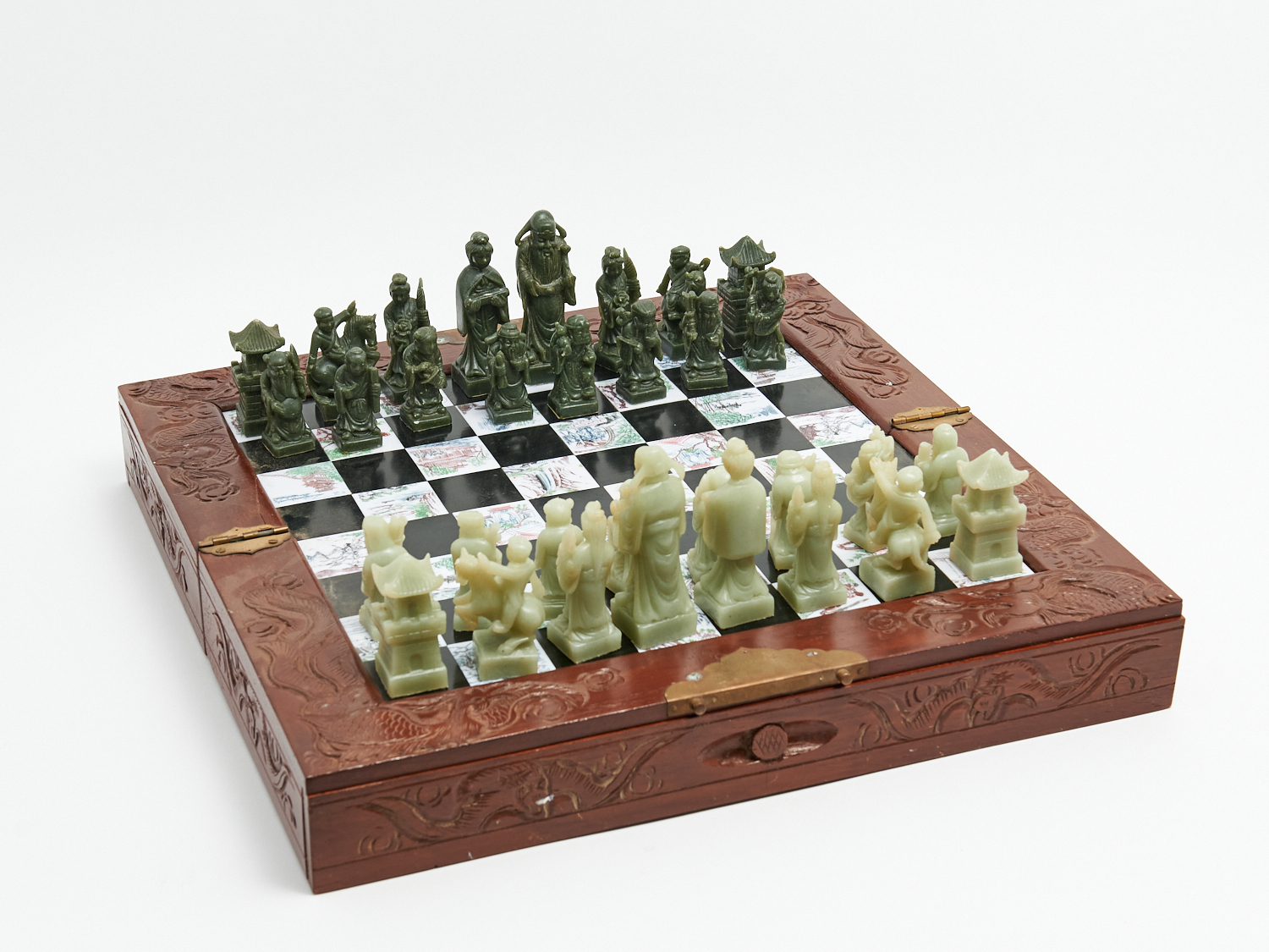 A CHESS SET WITH CARVED HARDSTONE CHESS PIECES W.45.5CM, LEONARD JOEL LOCAL DELIVERY: MEDIUM