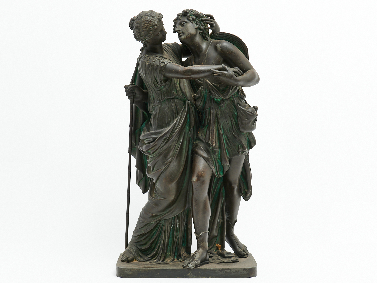 A BRONZED SPELTER CLASSICAL FIGURE GROUP H.47CM, LEONARD JOEL LOCAL DELIVERY: MEDIUM