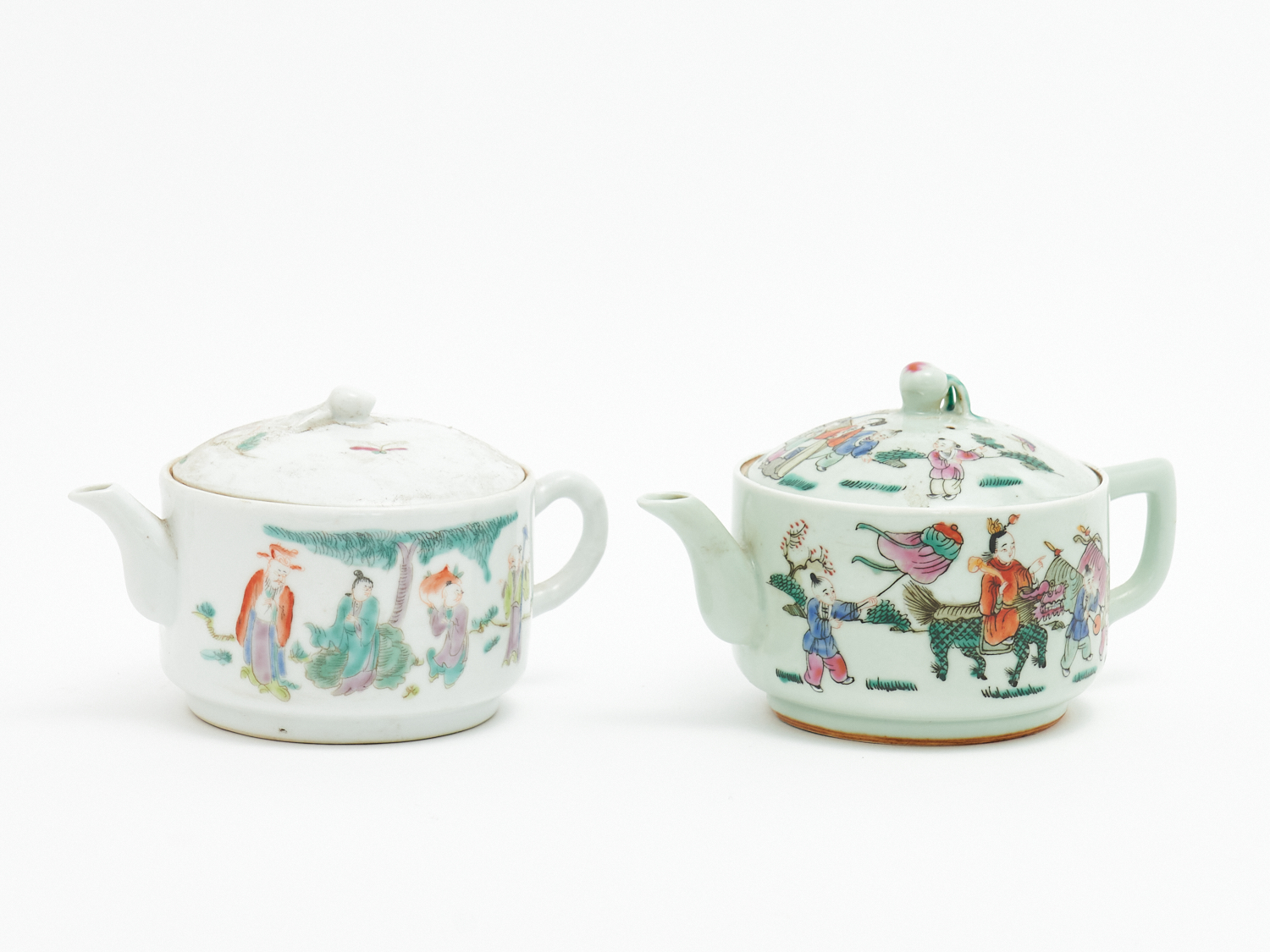 TWO CHINESE CERAMIC TEAPOTS W.16.5CM, LEONARD JOEL LOCAL DELIVERY: SMALL