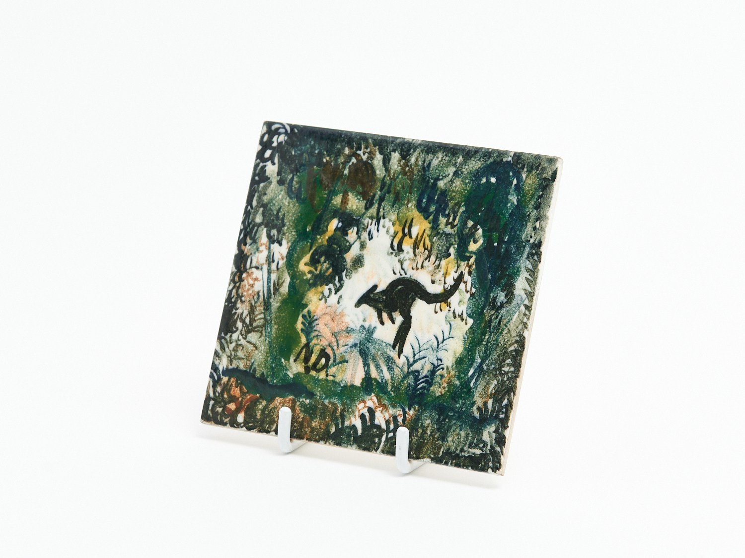 A CERAMIC TILE DECORATED BY NEIL DOUGLAS W.10CM, LEONARD JOEL LOCAL DELIVERY: SMALL