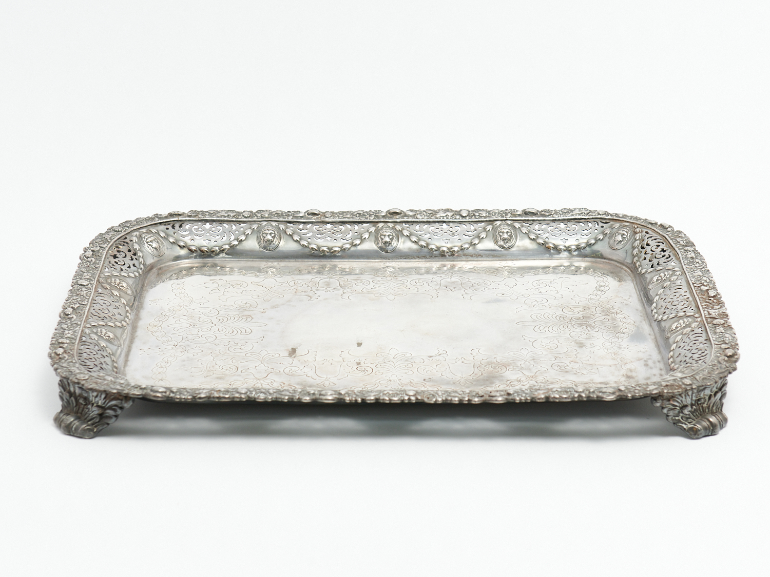 A VICTORIAN STYLE SHEFFIELD PLATE TRAY W.48CM X D.37CM, LEONARD JOEL LOCAL DELIVERY: MEDIUM