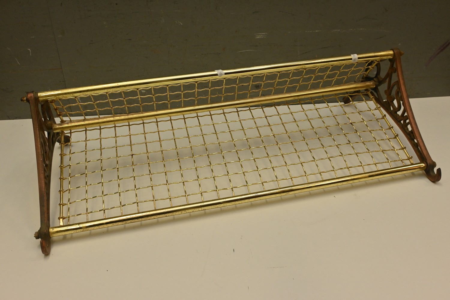 A BRASS AND COPPER NEW SOUTH WALES TRAIN LUGGAGE RACK ( 20H X 72W X 38D CM) (LEONARD JOEL DELIVERY SIZE: MEDIUM)