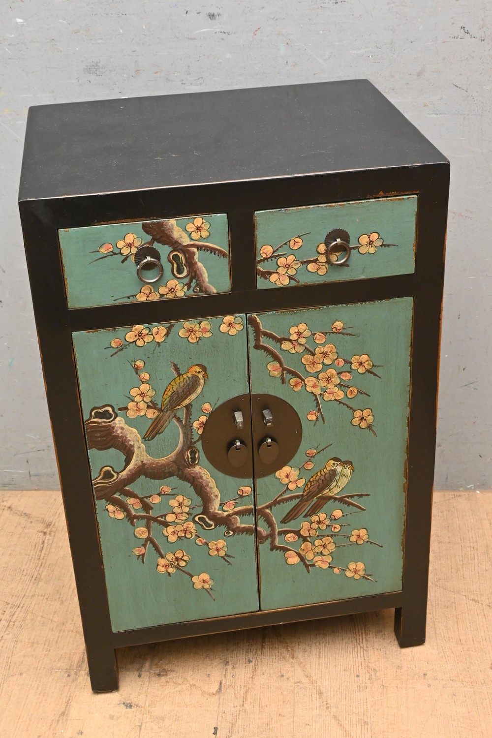 A CHINESE PAINTED CABINET WITH BIRD MOTIF ( 76H X 50W X 40D CM) (LEONARD JOEL DELIVERY SIZE: LARGE)