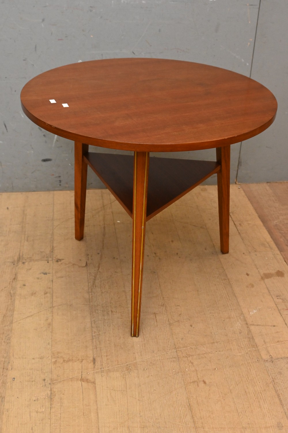 A MID CENTURY GERMAN TEAK OCCASIONAL TABLE WITH BRASS INLAY ( 57H X 65 DIAMETER CM) (LEONARD JOEL DELIVERY SIZE: LARGE)