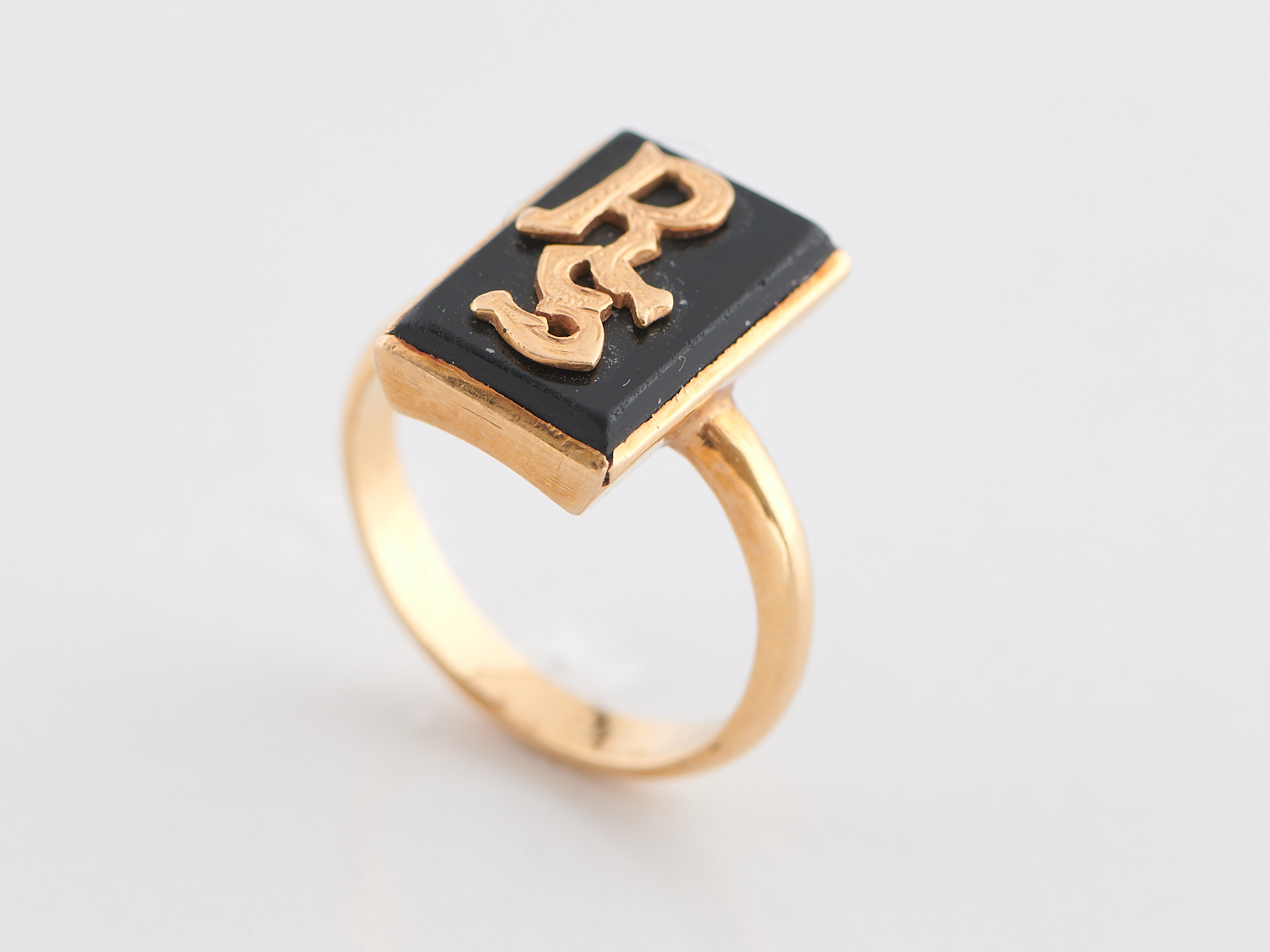 A SIGNET PLAQUE RING IN 18CT GOLD, SIZE N, 5.28GM