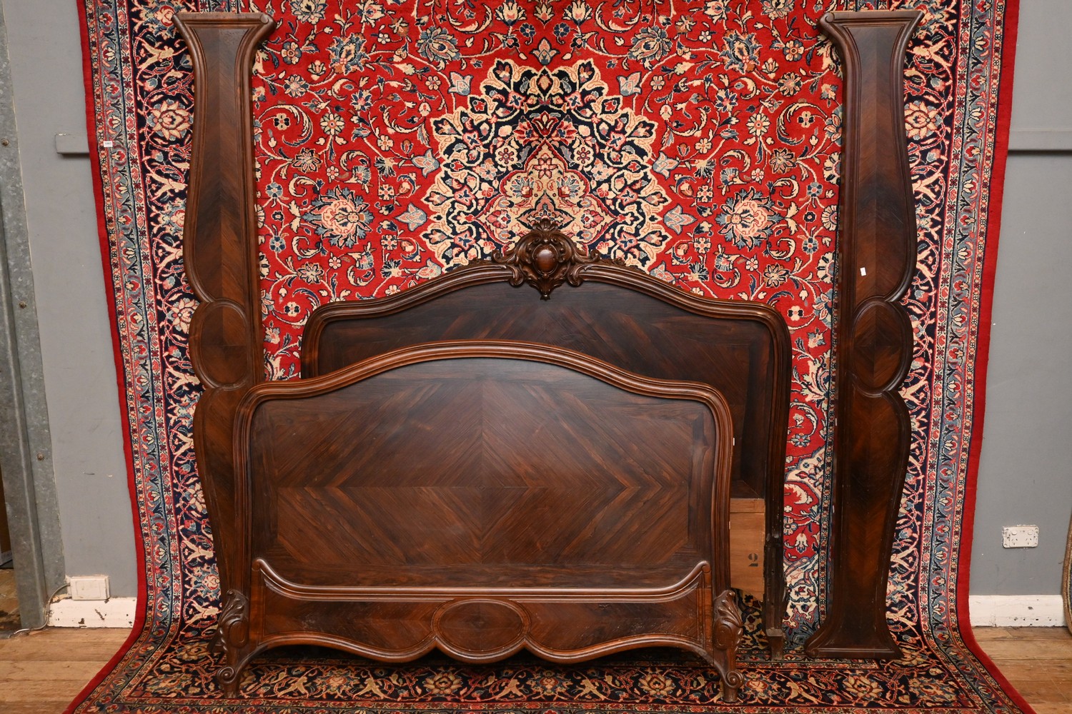 A LOUIS XV STYLE ROSEWOOD BED ( 135H X 146W CM) (LEONARD JOEL DELIVERY SIZE: LARGE)