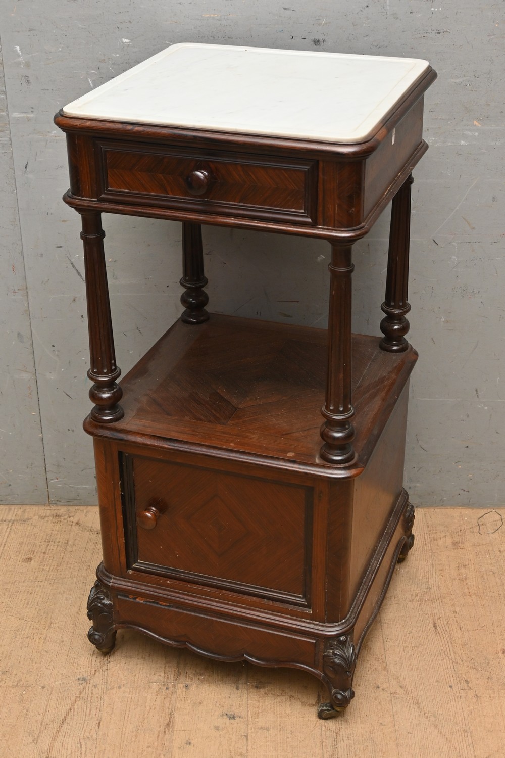 A LOUIS XV STYLE ROSEWOOD BEDSIDE CABINET WITH MARBLE TOP ( A/F) ( 87H X 43W X 43D CM) (LEONARD JOEL DELIVERY SIZE: LARGE)