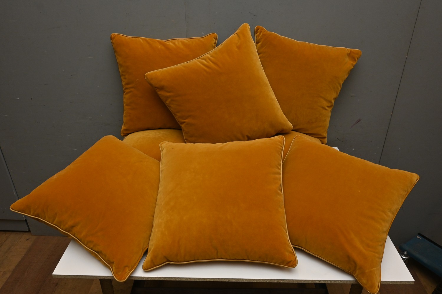 EIGHT DOWN FILLED VELVET CUSHIONS ( A/F) ( 54H X 54W CM) (LEONARD JOEL DELIVERY SIZE: LARGE)