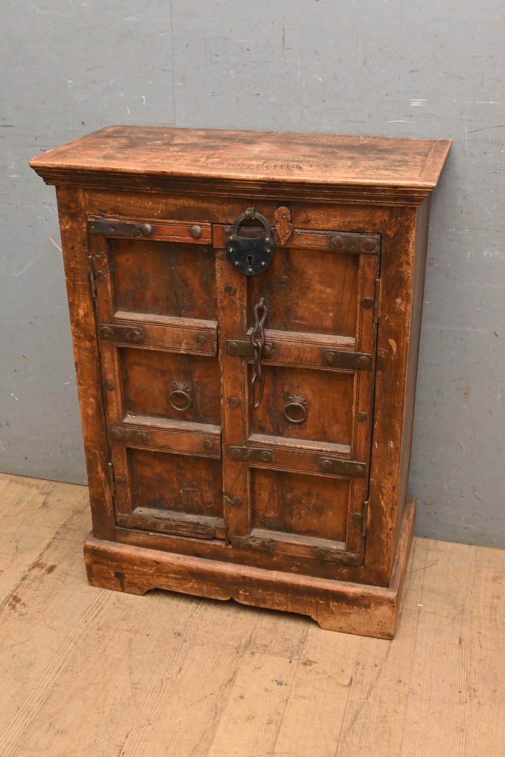 A RUSTIC CHINESE TWO DOOR CABINET ( 92H X 69W X 36D CM) (LEONARD JOEL DELIVERY SIZE: LARGE)