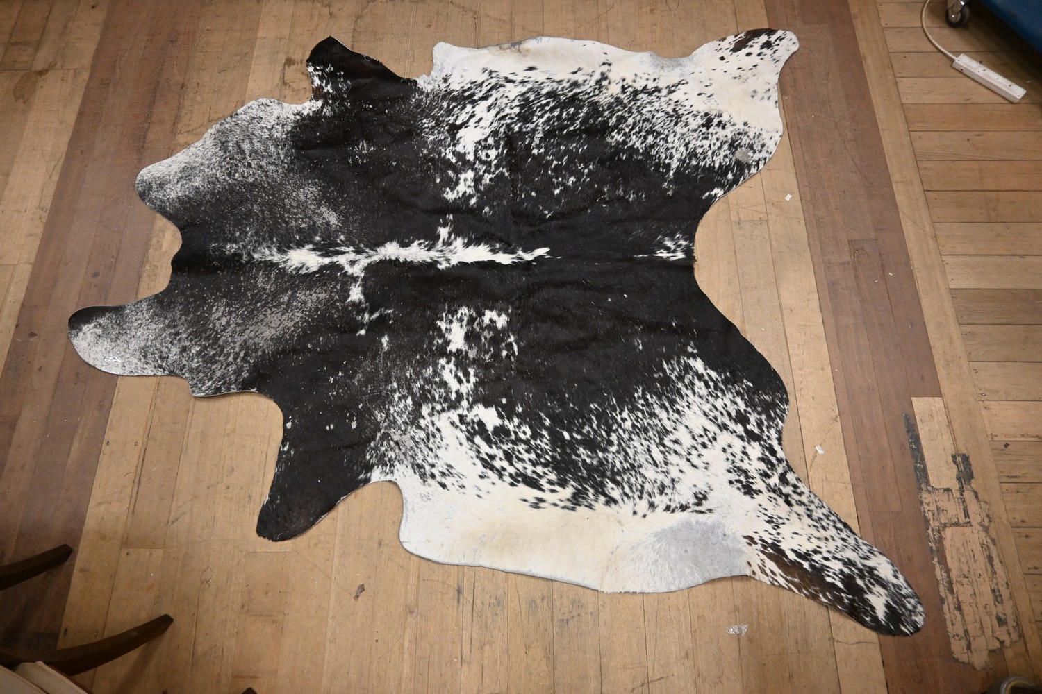 A COW HIDE RUG ( A/F) ( 220 X 187CM) (LEONARD JOEL DELIVERY SIZE: LARGE)
