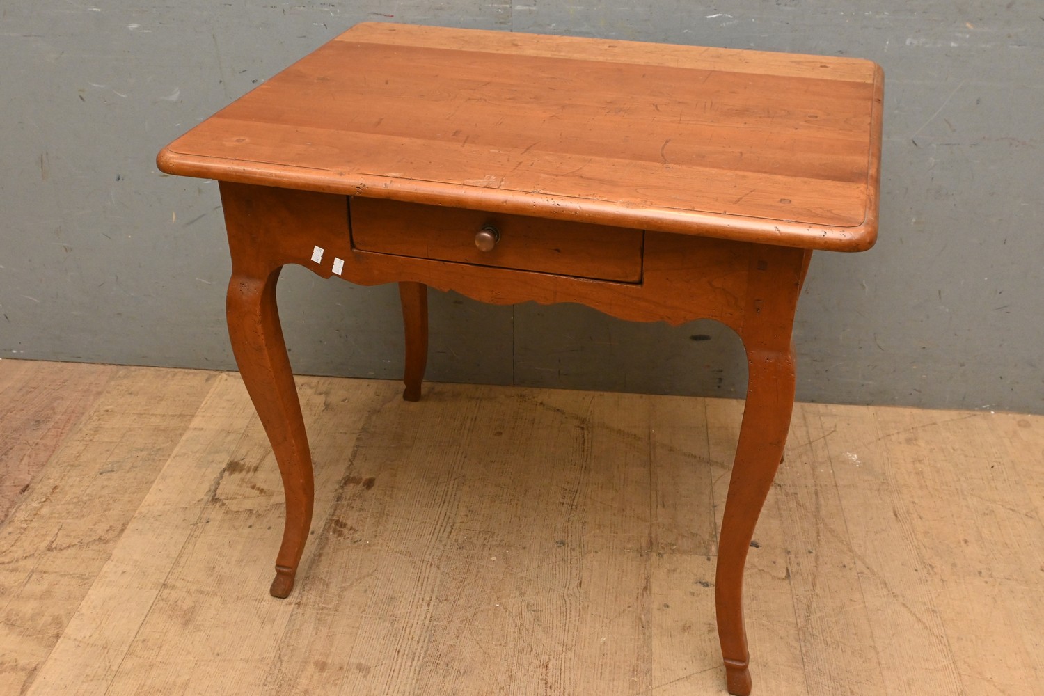 A RUSTIC SINGLE DRAWER SIDE TABLE WITH BRASS HANDLE ( 73H X 85W X 64D CM) (LEONARD JOEL DELIVERY SIZE: LARGE)