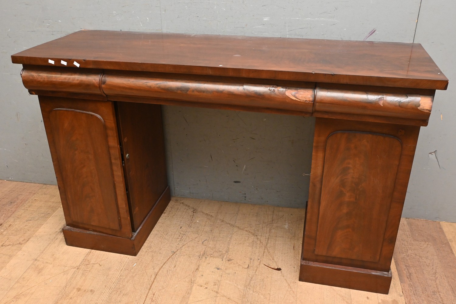A VICTORIAN MAHOGANY PEDSTAL SIDEBOARD (A/F) ( 92H X 151W X 53D CM)(LEONARD JOEL DELIVERY SIZE: X- LARGE)