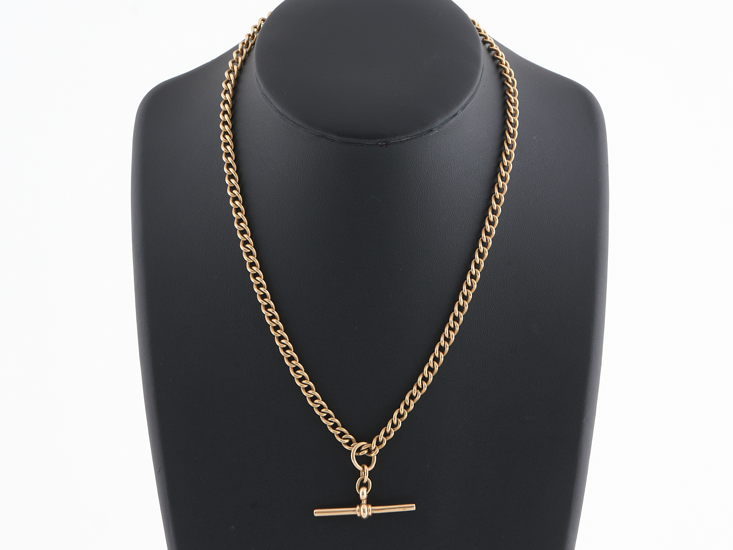 AN ALBERT CHAIN IN 9CT GOLD, LENGTH 450MM, WEIGHT APPROXIMATELY 35.4GMS