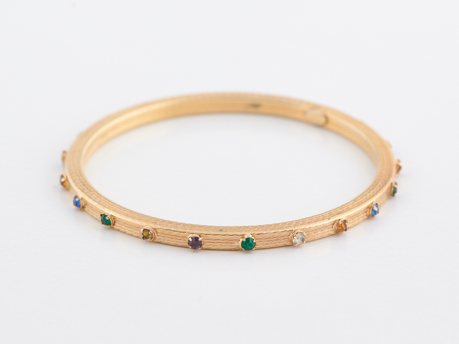 A VINTAGE GEM SET BANGLEIN GOLD PLATE BY CHRISTIAN DIOR, INNER DIAMETER 63MM