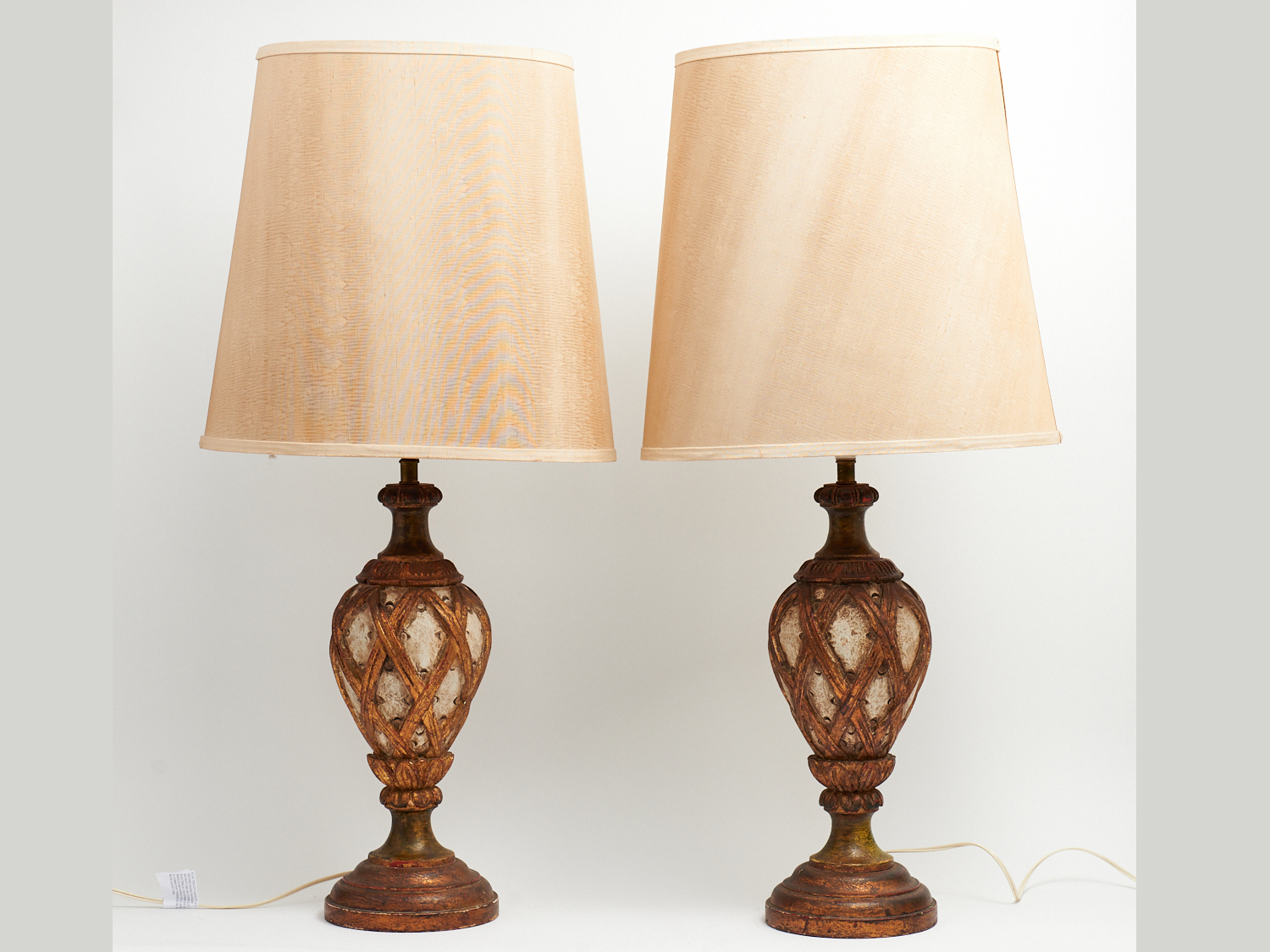 A PAIR OF FLORENTINE STYLE WOODEN LAMPS H.93CM, LEONARD JOEL LOCAL DELIVERY: MEDIUM