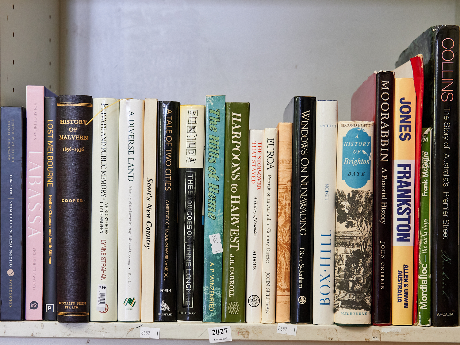 SHELF OF LOCAL HISTORIES INCLUDING COOPER "HISTORY OF MALVERN 1836-1936" (1ST EDITION 1936), "COLONGULAC, ORIGINS, OWNERS AND OCCUPIERS", LYA STRAHAN "PRIVATE AND PUBLIC MEMORY", ALDOUS "THE STOP OVER THAT STAYED", A HISTORY OF ESSENDON, LEONARD JOEL LOCAL DELIVERY: MEDIUM