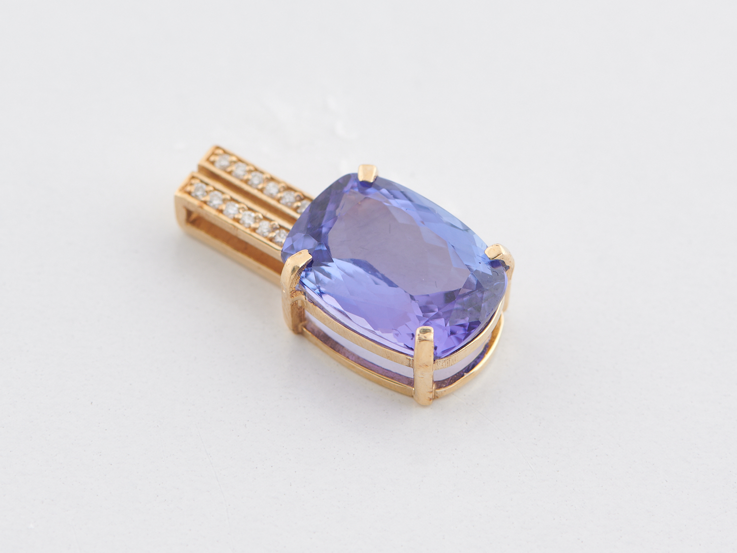 A DIAMOND AND TANZANITE PENDANT IN 14CT GOLD, 21 X 10MM, 3.9GMS, WITH VALUATION
