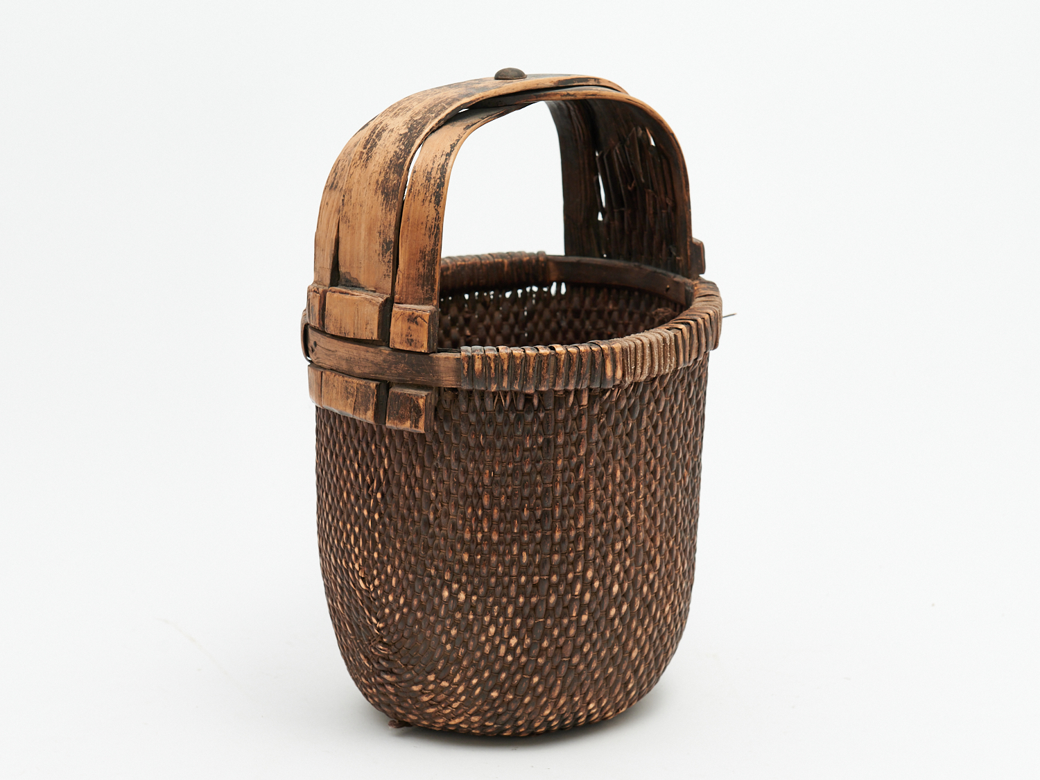 A CHINESE THREE HANDLED RICE BASKET H.41CM, LEONARD JOEL LOCAL DELIVERY: SMALL
