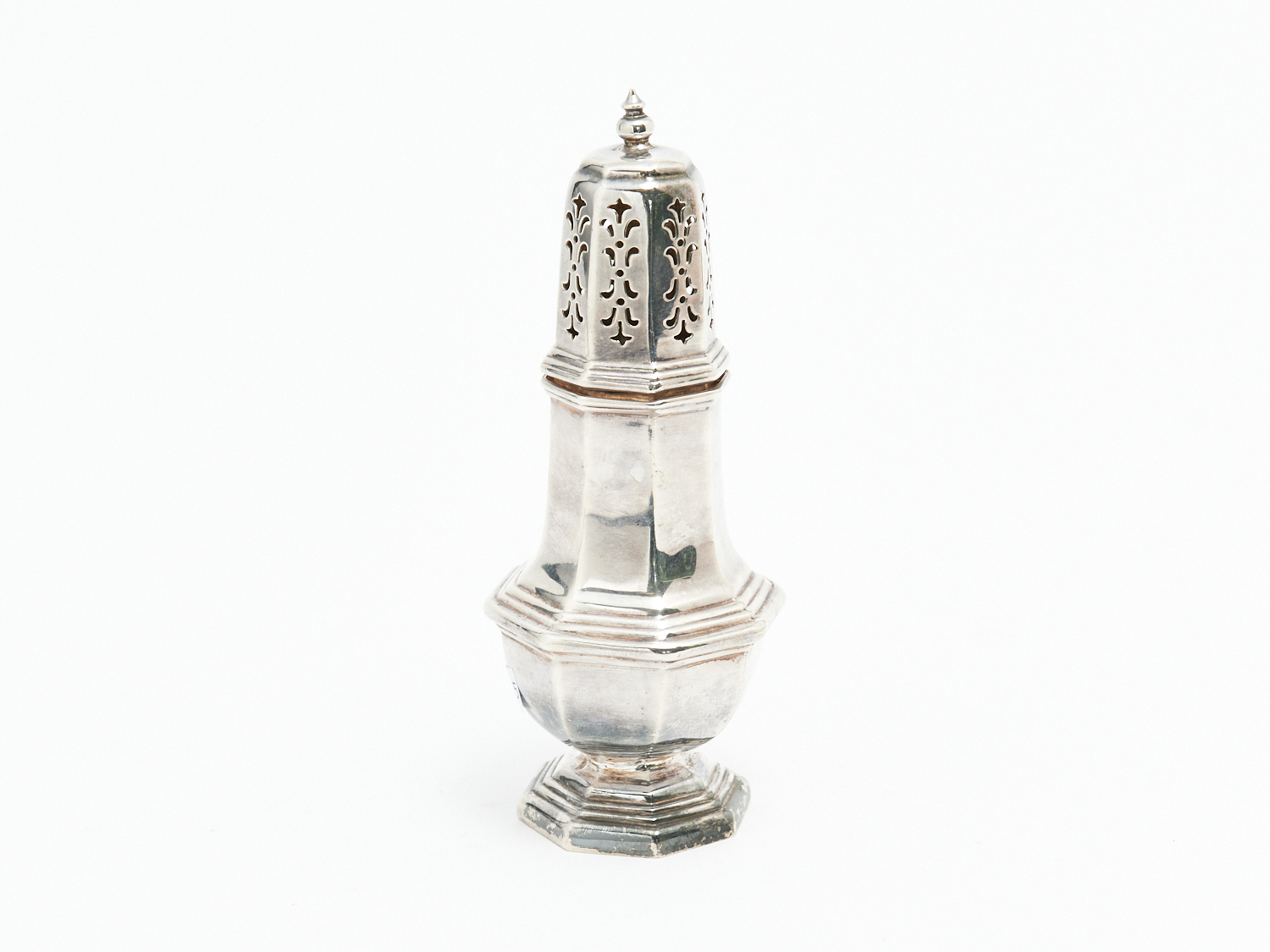 A STERLING SILVER SUGAR CASTOR 170 GRAMS H.18.5CM, LEONARD JOEL LOCAL DELIVERY: SMALL