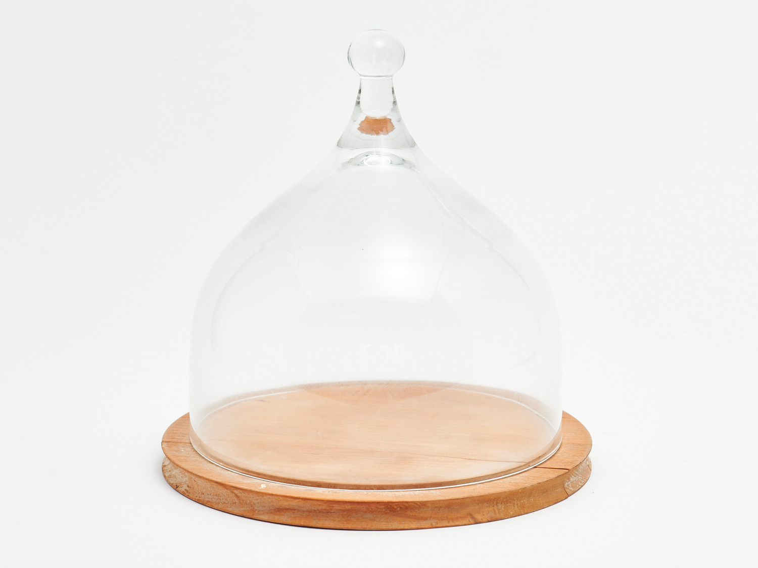 A SCANDINAVIAN GLASS CHEESE DOME ON WOODEN BASE (A/F) H.29.5CM, LEONARD JOEL LOCAL DELIVERY: MEDIUM