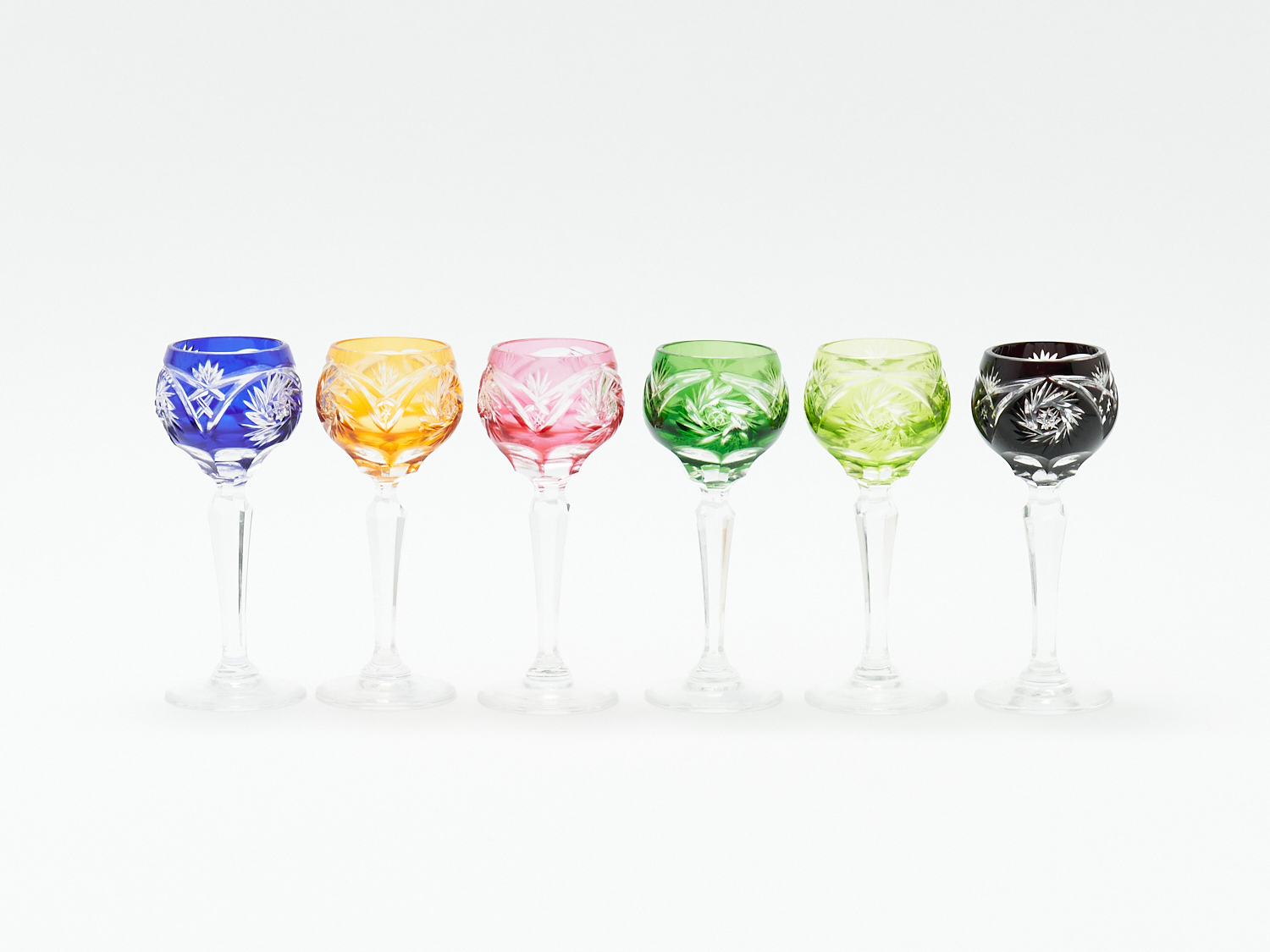 A HARLEQUIN SET OF SIX STEMMED LIQUEURS (A/F) H.11.5CM, LEONARD JOEL LOCAL DELIVERY: SMALL