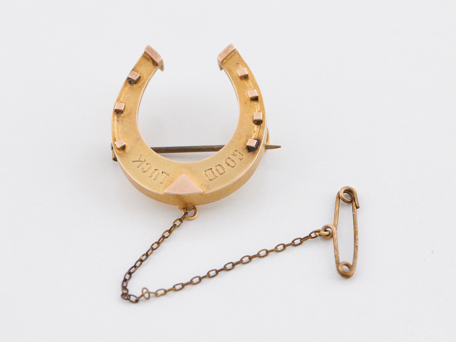 AN ANTIQUE "GOOD LUCK" HORSESHOE BROOCH IN 9CT GOLD, BY WENDTS OF ADELAIDE, LENGTH 31MM, 5.6GMS