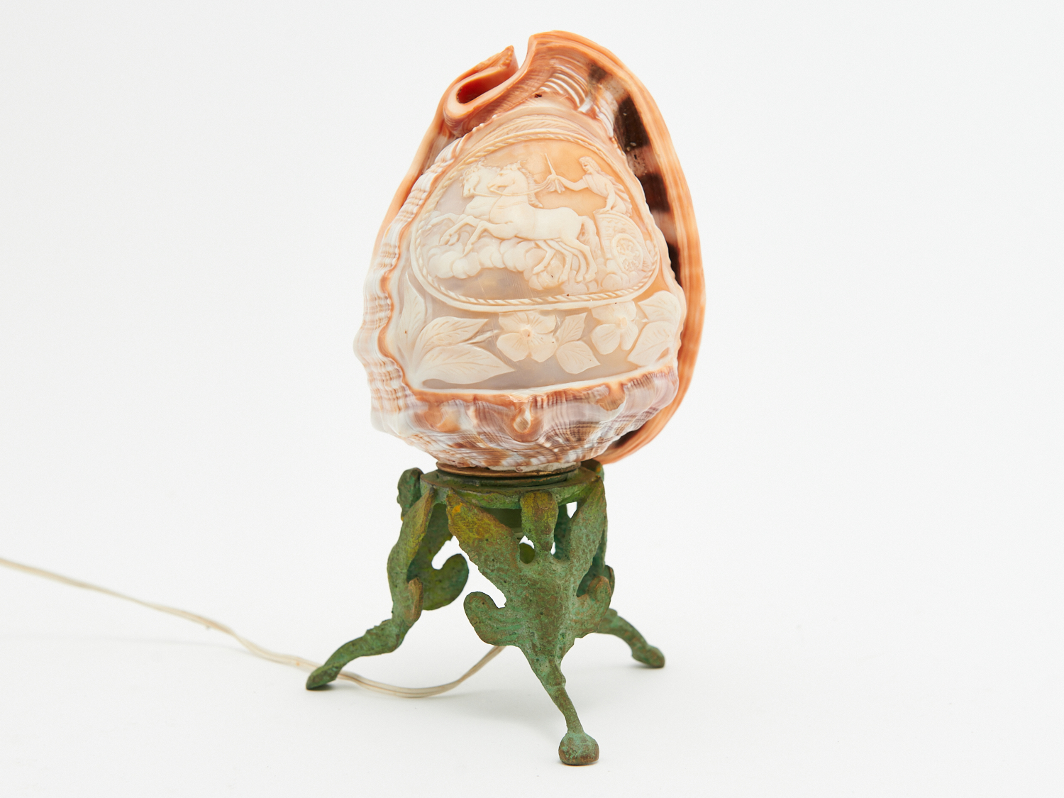 A CAMEO SHELL LAMP H.19CM, LEONARD JOEL LOCAL DELIVERY: SMALL