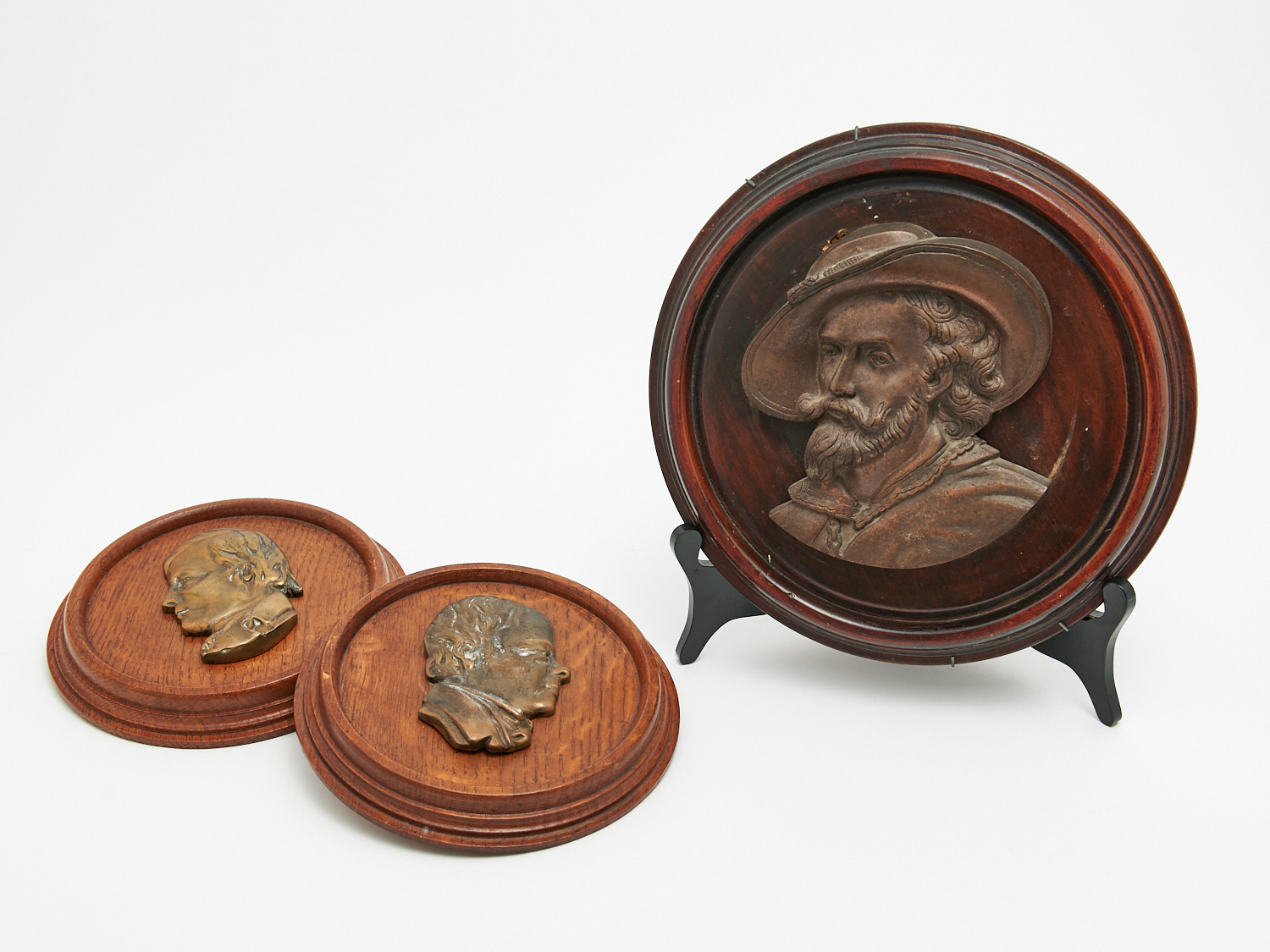 THREE BRONZE PLAQUES OF 16TH CENTURY PAINTERS – ONE PETER RUBENS, DIA.30CM (LARGEST), LEONARD JOEL LOCAL DELIVERY: MEDIUM