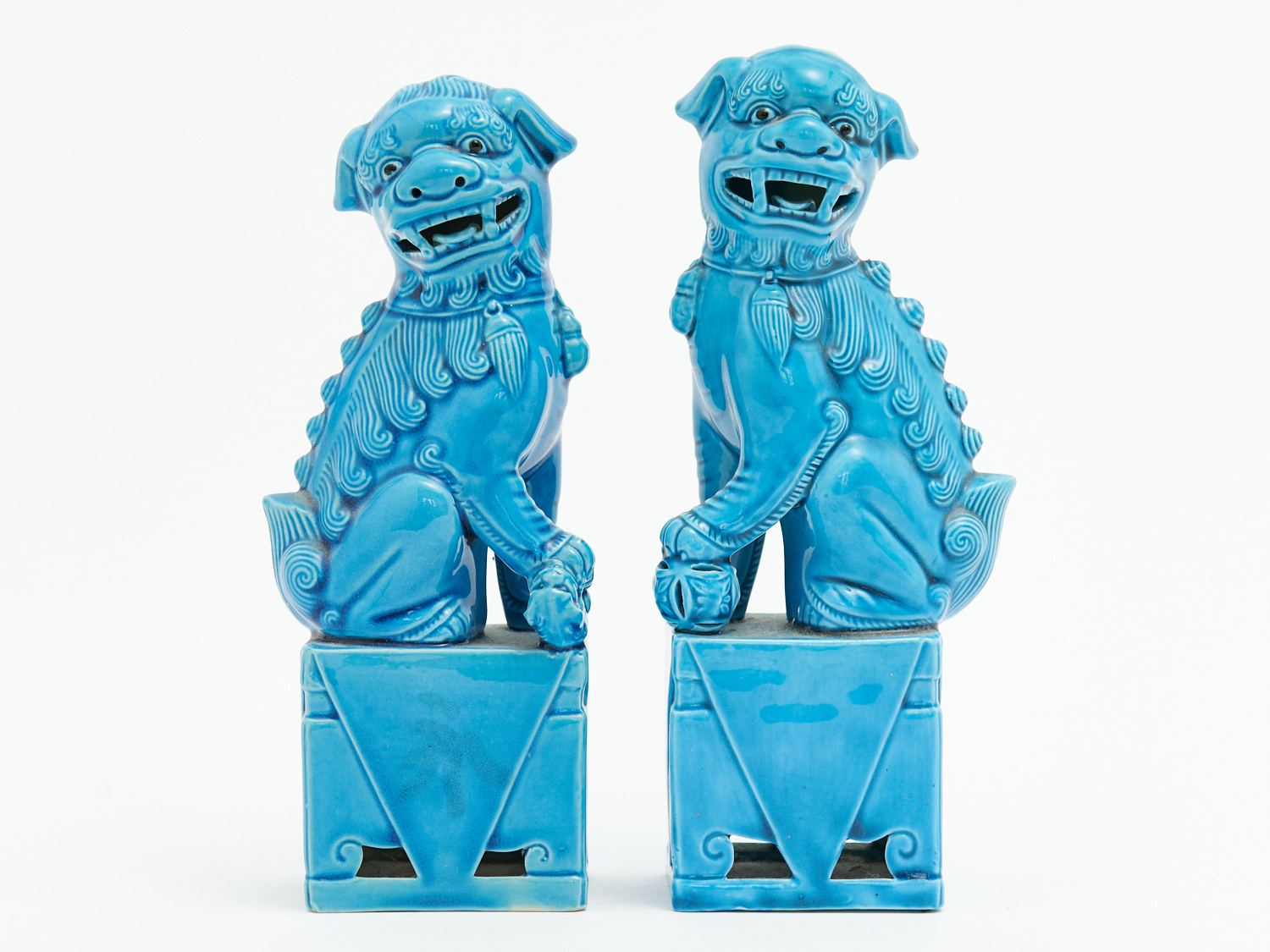 A PAIR OF VINTAGE TURQUOISE GLAZED CHINESE CERAMIC FOO LIONS, H.20CM, LEONARD JOEL LOCAL DELIVERY: SMALL
