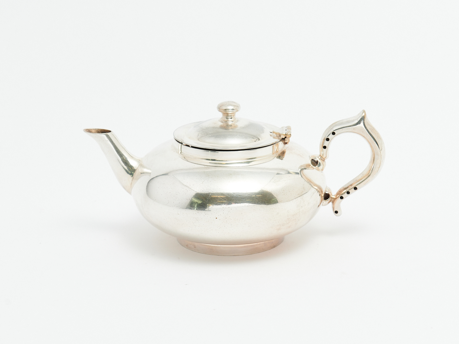 A SMALL ROBUR SILVER PLATE TEAPOT WITH INFUSER (A/F), W.20CM, LEONARD JOEL LOCAL DELIVERY: SMALL