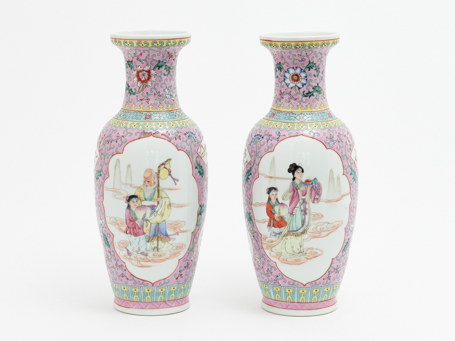 A PAIR OF CHINESE REPUBLIC PERIOD FAMILLE ROSE ENAMELLED PORCELAIN VASES, H.32CM, LEONARD JOEL LOCAL DELIVERY: MEDIUM