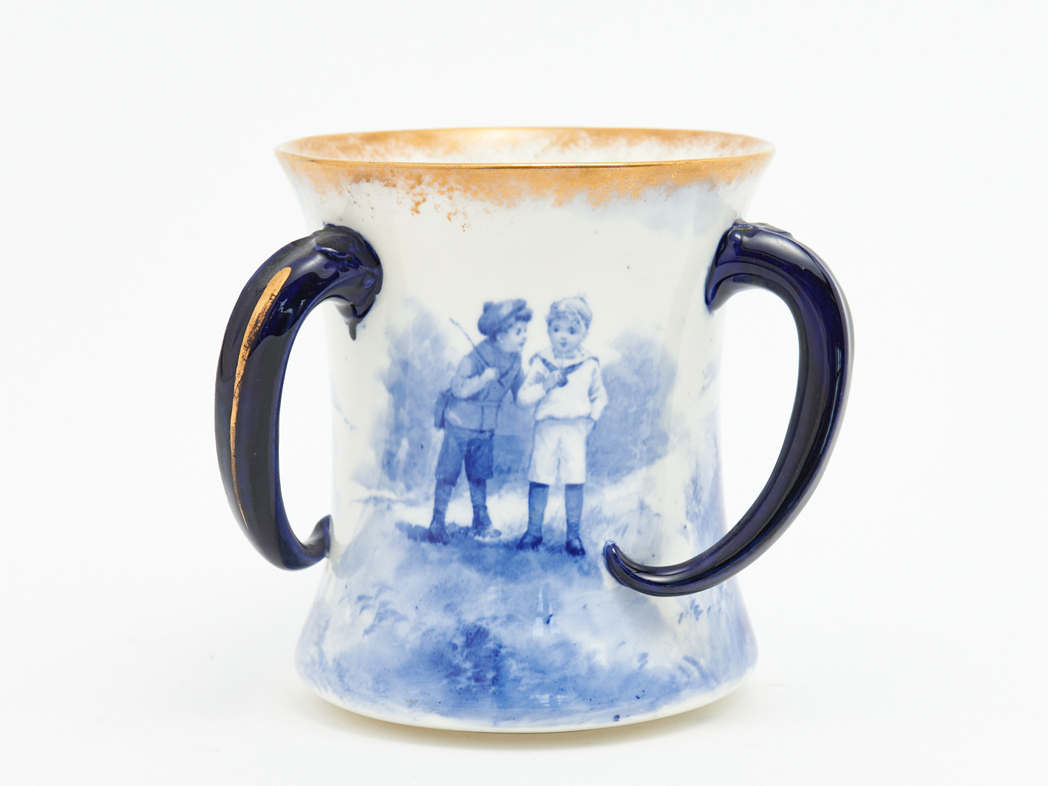 A 19TH-CENTURY UNMARKED ROYAL DOULTON THREE HANDLED LOVING CUP, H.15CM, LEONARD JOEL LOCAL DELIVERY: SMALL