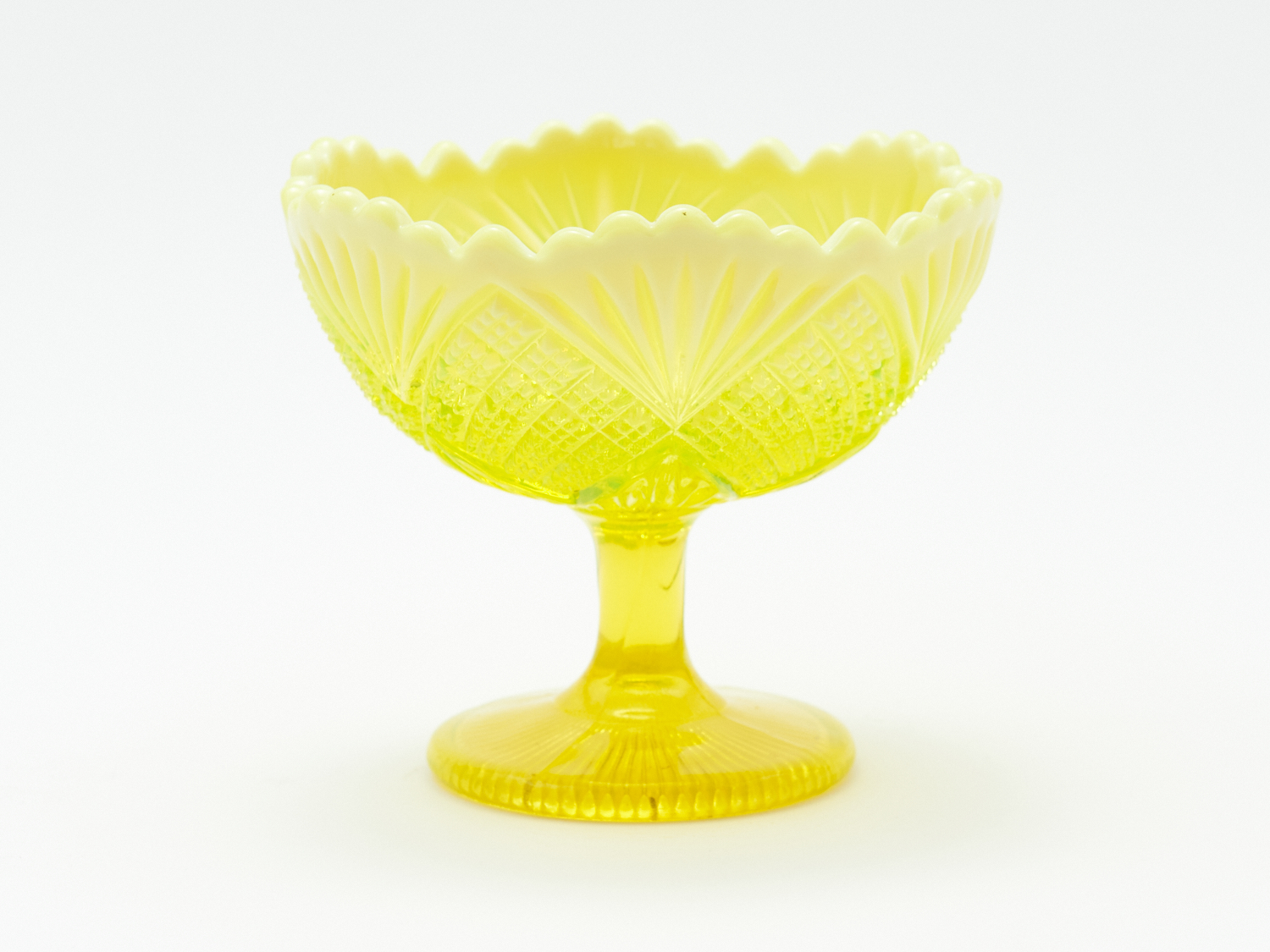 A 19TH-CENTURY REGISTERED DAVIDSON VASELINE GLASS COMPORT, H.13CM, LEONARD JOEL LOCAL DELIVERY: SMALL