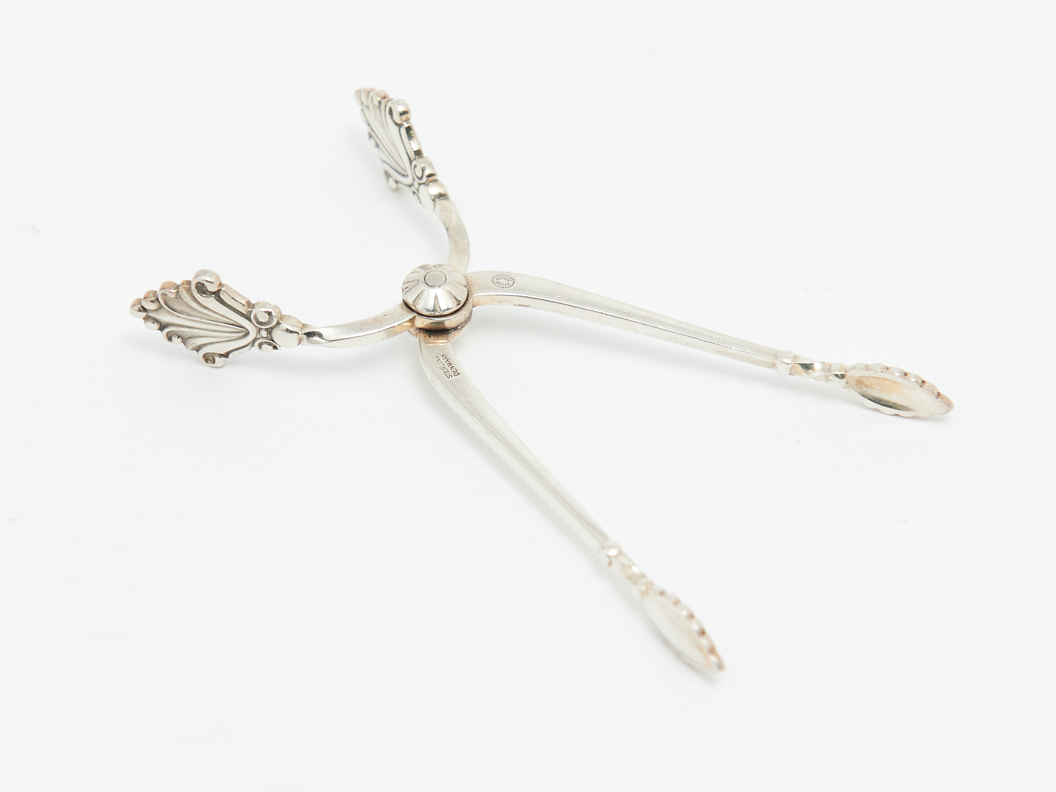 A PAIR OF GEORG JENSEN DENMARK STERLING SILVER ACORN PATTERN SUGAR TONGS H.9.5CM, LEONARD JOEL LOCAL DELIVERY: SMALL