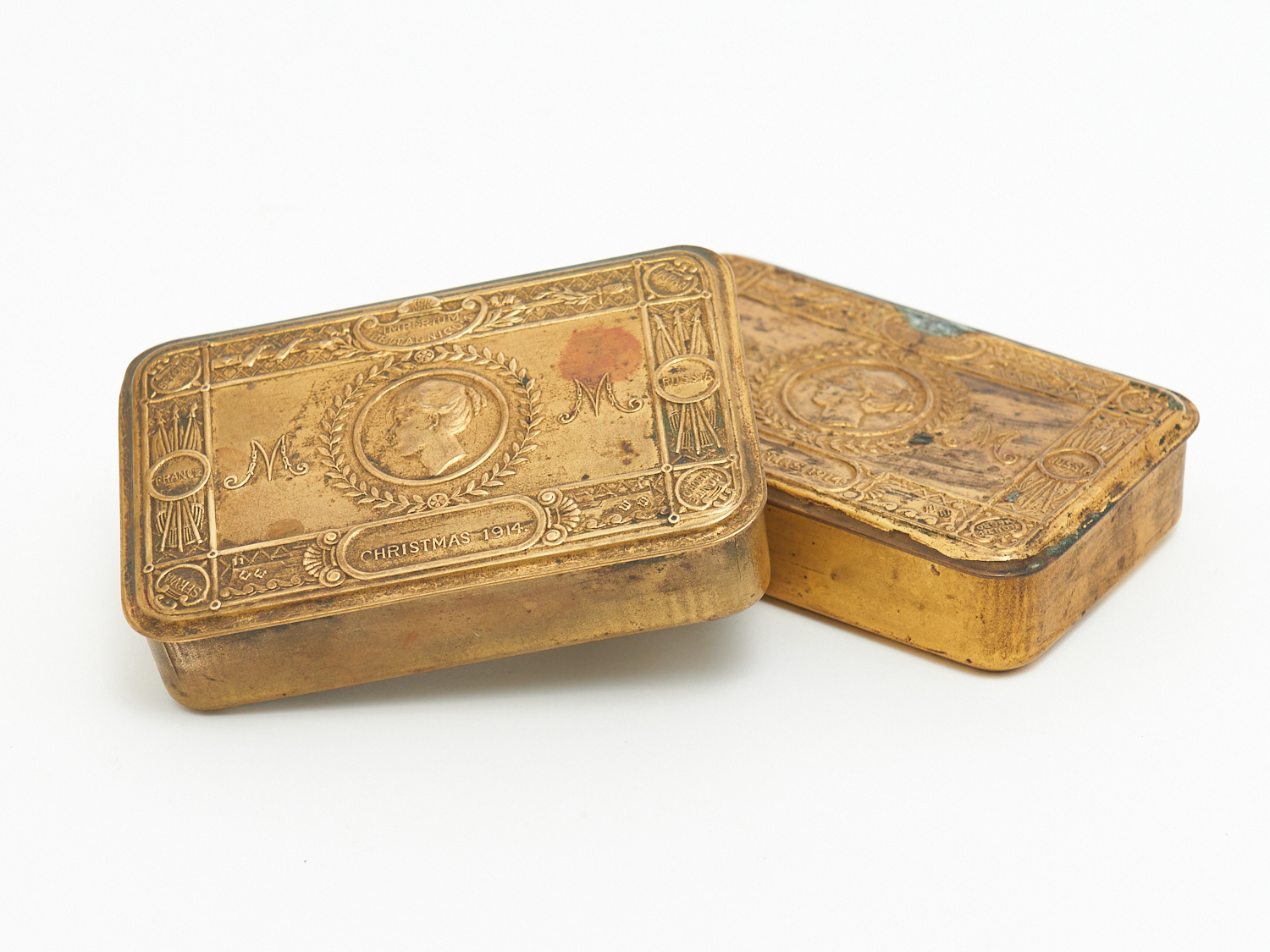 TWO WORLD WAR I CHRISTMAS 1914 SOLDIERS TINS, W.13CM, LEONARD JOEL LOCAL DELIVERY: SMALL