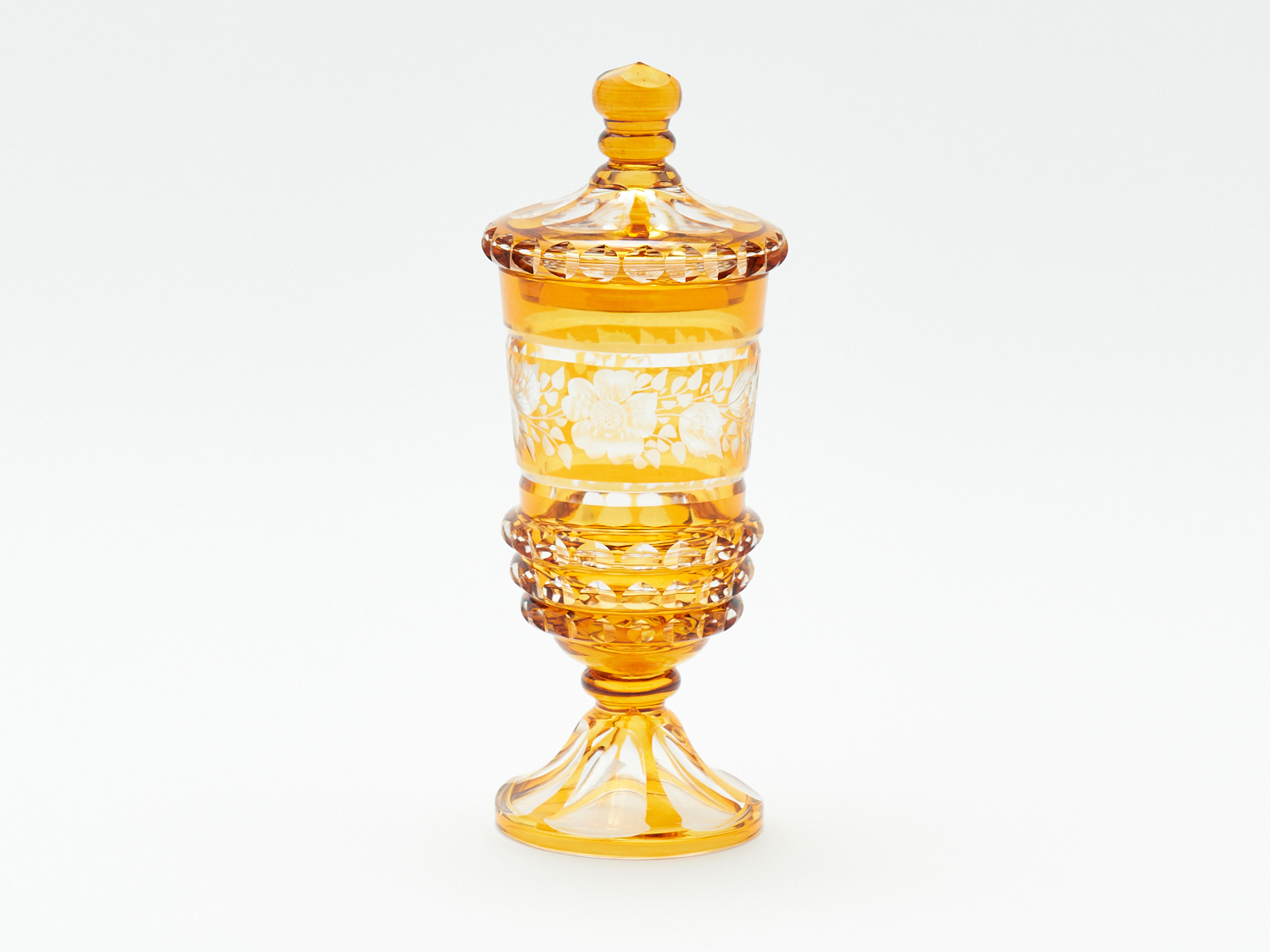 A 19TH-CENTURY BOHEMIAN CRYSTAL YELLOW CUT TO CLEAR LIDDED URN, H.24.5CM, LEONARD JOEL LOCAL DELIVERY: SMALL