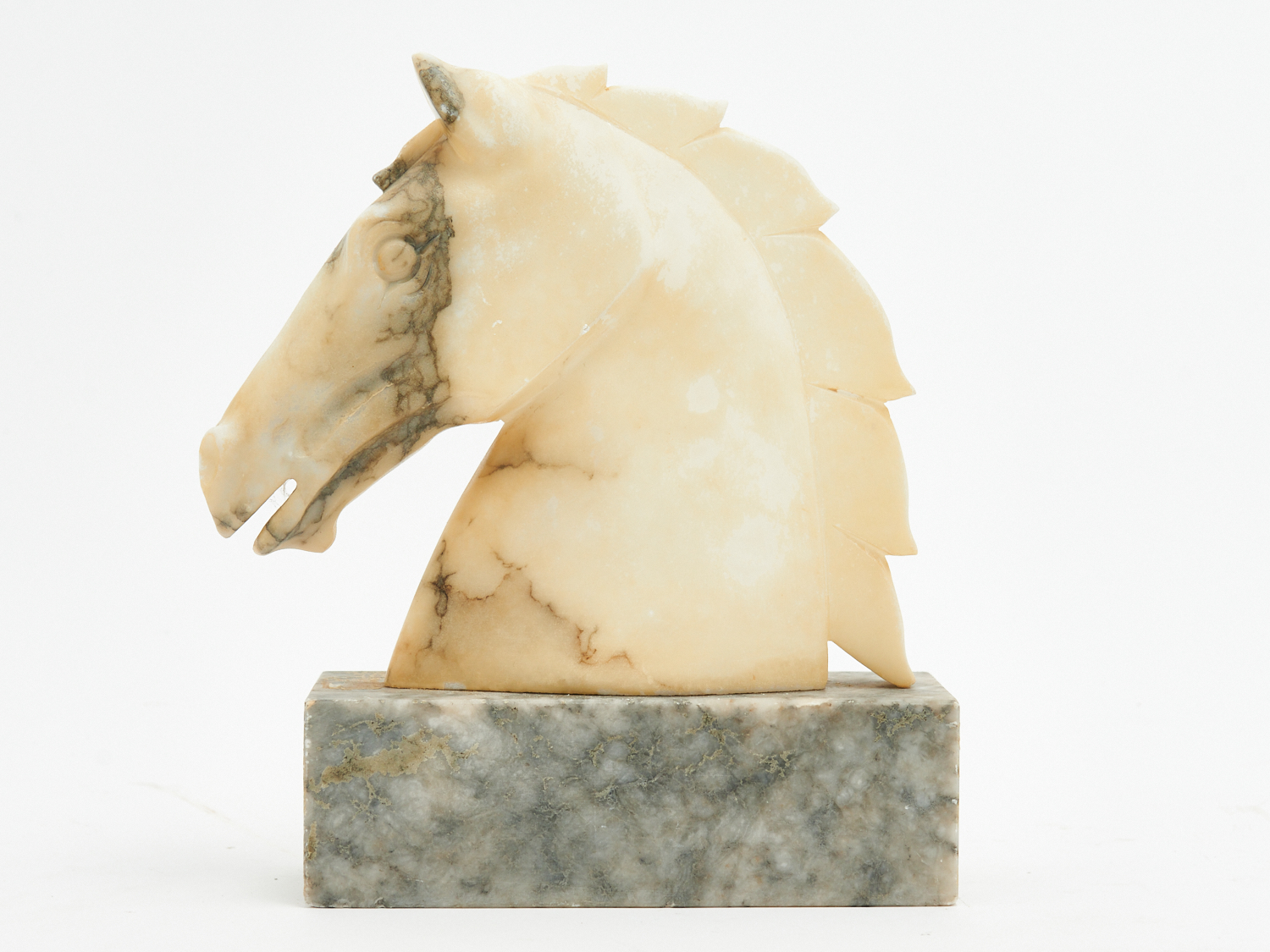 AN ITALIAN MARBLE AND ALABASTER HORSE HEAD (A/F) H.26CM, LEONARD JOEL LOCAL DELIVERY: SMALL