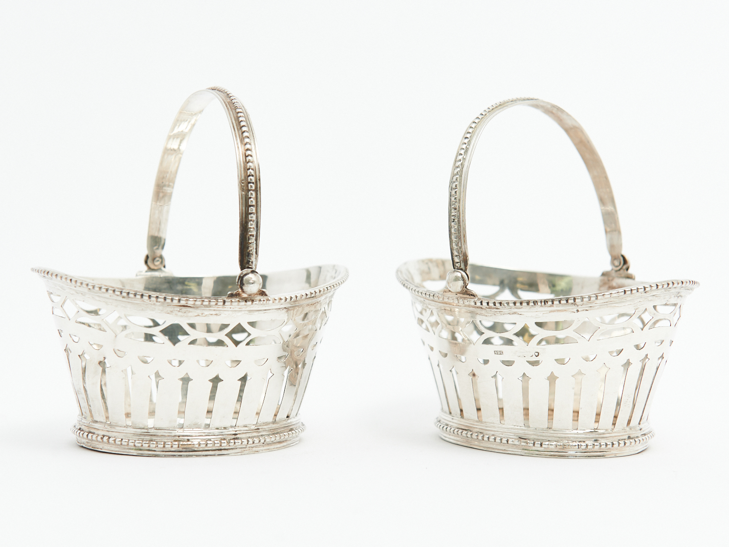 A PAIR OF 19TH-CENTURY FRENCH PIERCED OVAL SWING HANDLED BASKETS – 190 GRAM, LEONARD JOEL LOCAL DELIVERY: SMALL