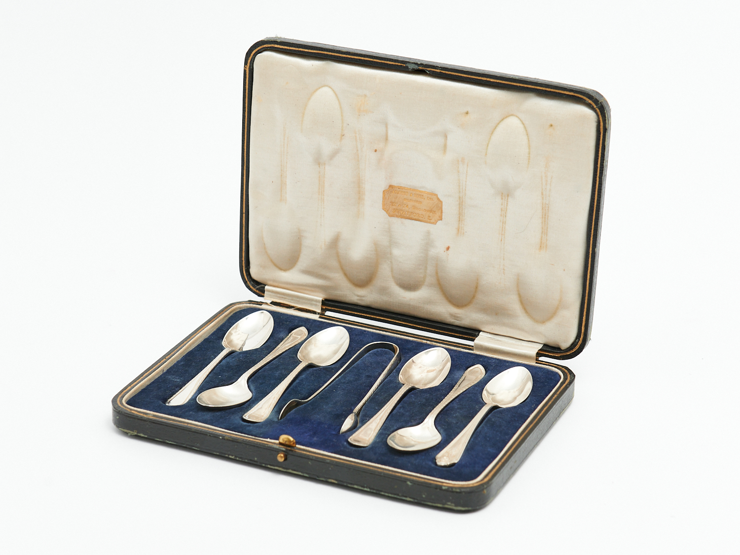 A CASED SET OF STERLING SILVER TEASPOONS AND TONGS, LEONARD JOEL LOCAL DELIVERY: SMALL