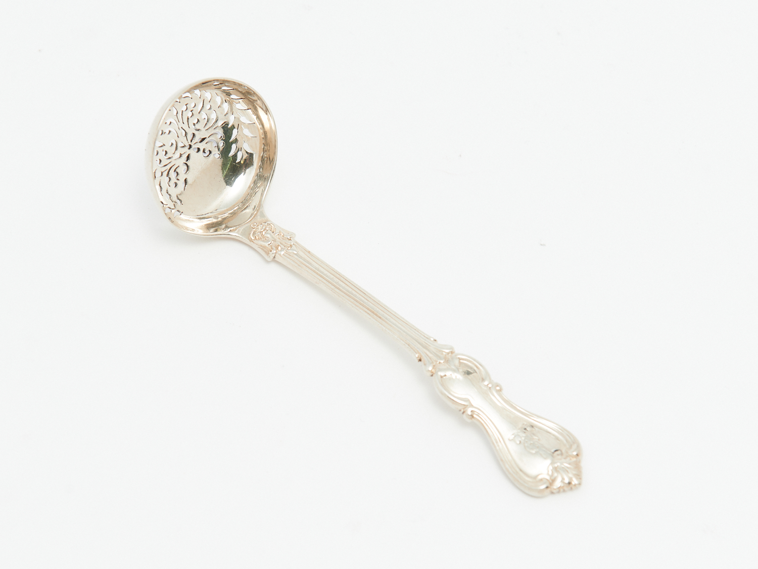 A VICTORIAN STERLING SILVER HALLMARKED DOUBLE STRUCK SIFTING SPOON  – 76 GRAMS, LEONARD JOEL LOCAL DELIVERY: SMALL