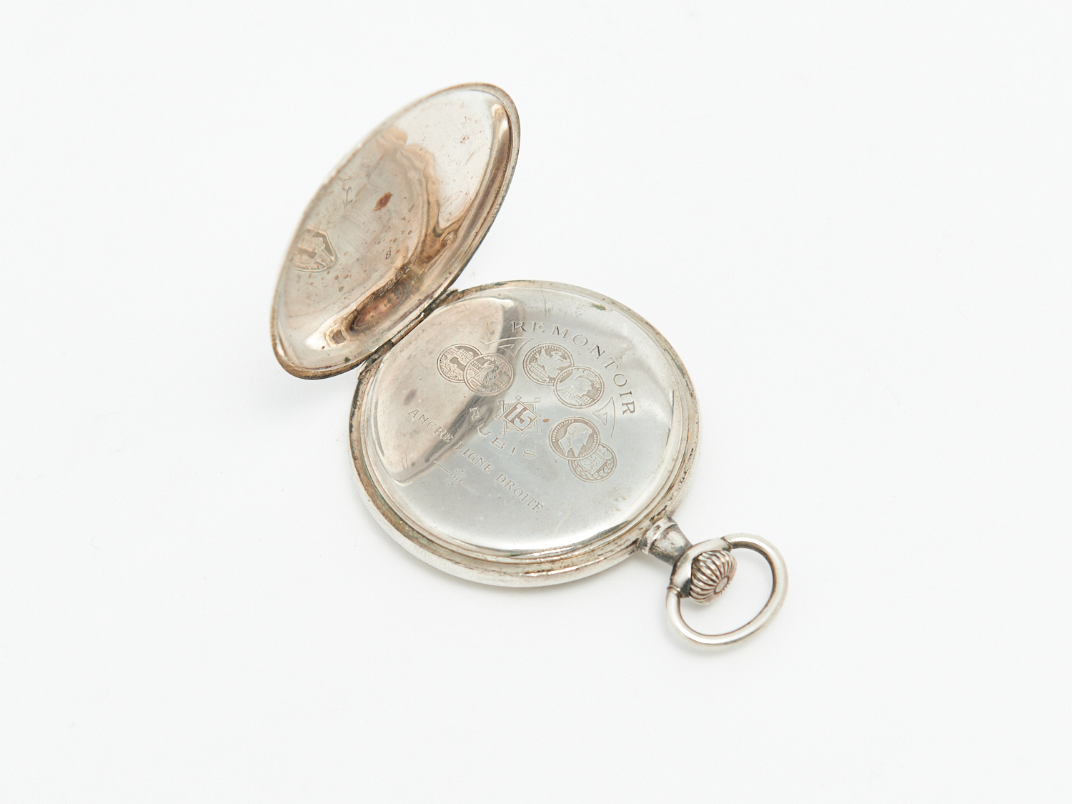 A FRENCH SILVER FLEUR DE LIS DECORATED CROWN WIND POCKET WATCH (A/F), LEONARD JOEL LOCAL DELIVERY: SMALL