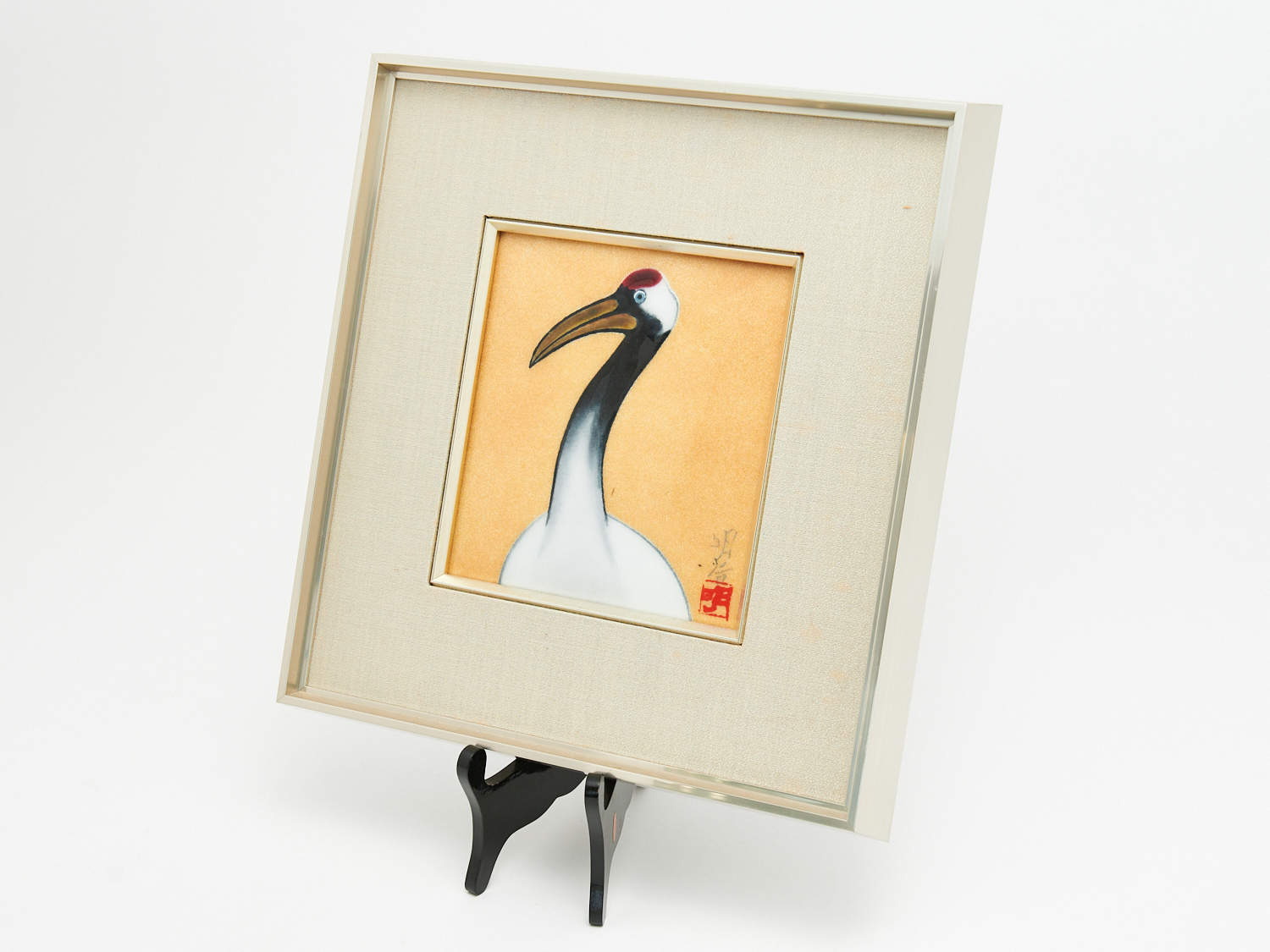 A JAPANESE FRAMED ENAMELLED PLAQUE WITH CRANE MOTIF H.39CM X W.35.5CM, LEONARD JOEL LOCAL DELIVERY: MEDIUM