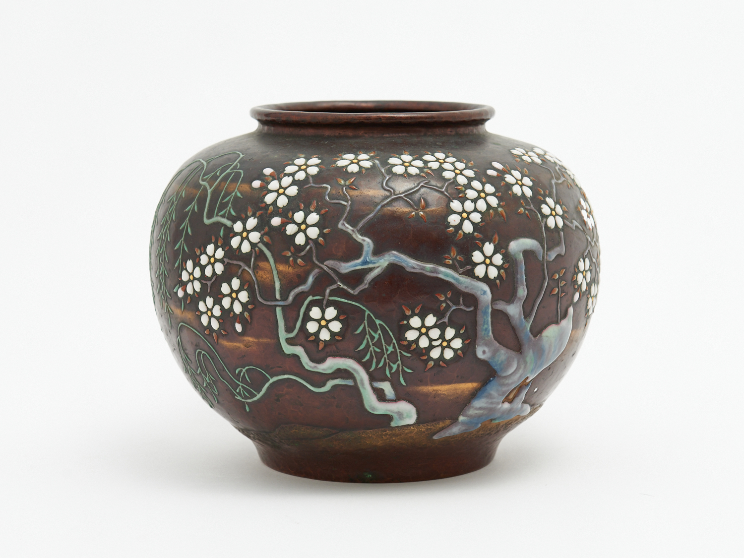 A JAPANESE ANDO ENAMEL ON COPPER VASE, MARK TO BASE H.19CM, LEONARD JOEL LOCAL DELIVERY: SMALL
